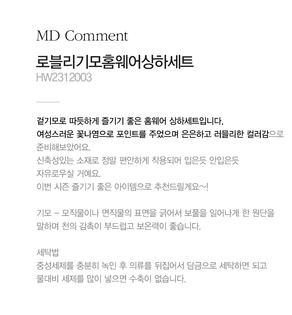마담4060의 모든 의류 제품은 처음 1~2회 드라이크리닝을 권장합니다.