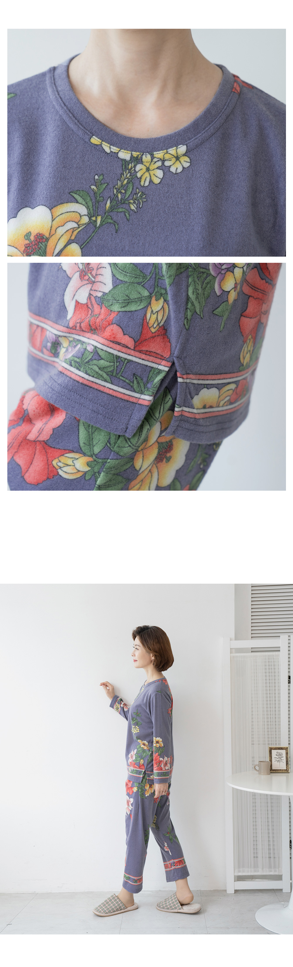 사이즈 총장(상/하) 어깨(단면)/허리(단면) 가슴(단면)/엉덩이(단면) 소매길이(단면)/밑위(단면) 암홀(단면)/허벅지(단면) 소매통(단면) 소매단(단면) 밑단(단면)(상/하) 목너비