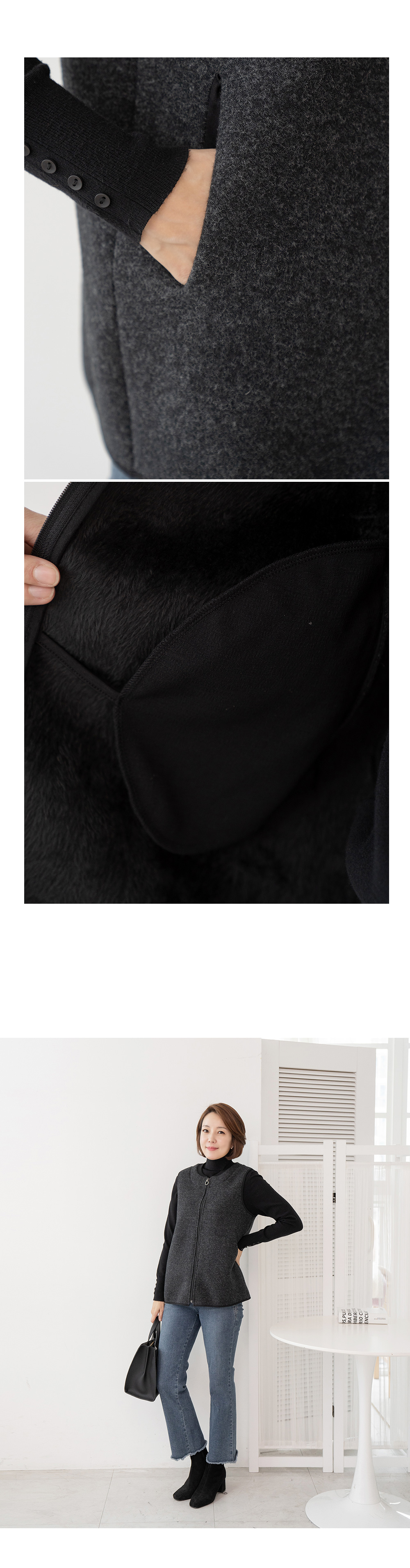 • Lip pocket fur vest-VE2312007-