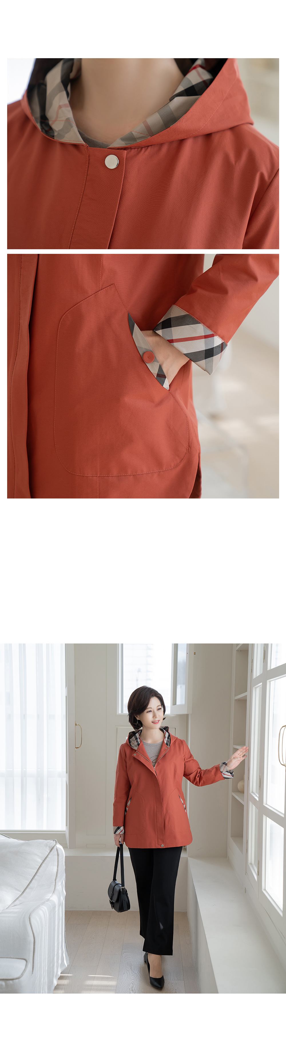 • Check Hooded Half Jumper-JP2403013-