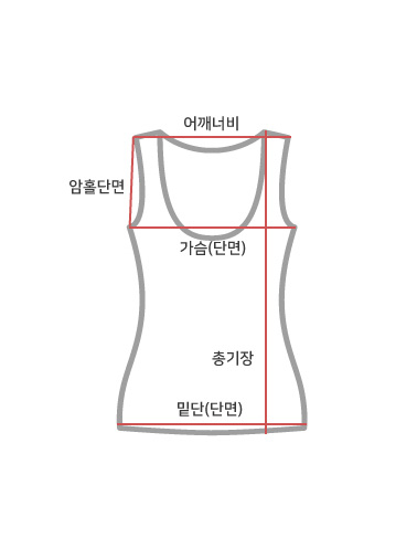 사이즈 총장 어깨 가슴(단면) 암홀(단면) 밑단(단면) 목너비