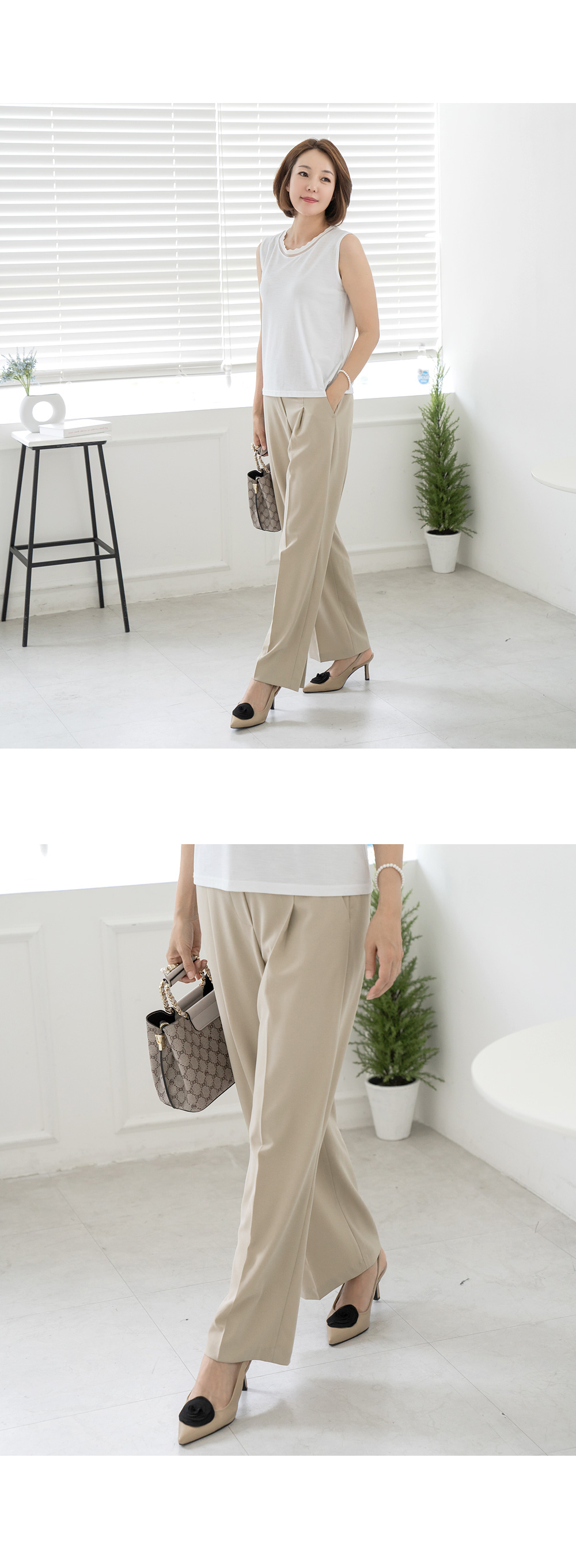 • Semi-bending wide slacks pants-PN2405004-
