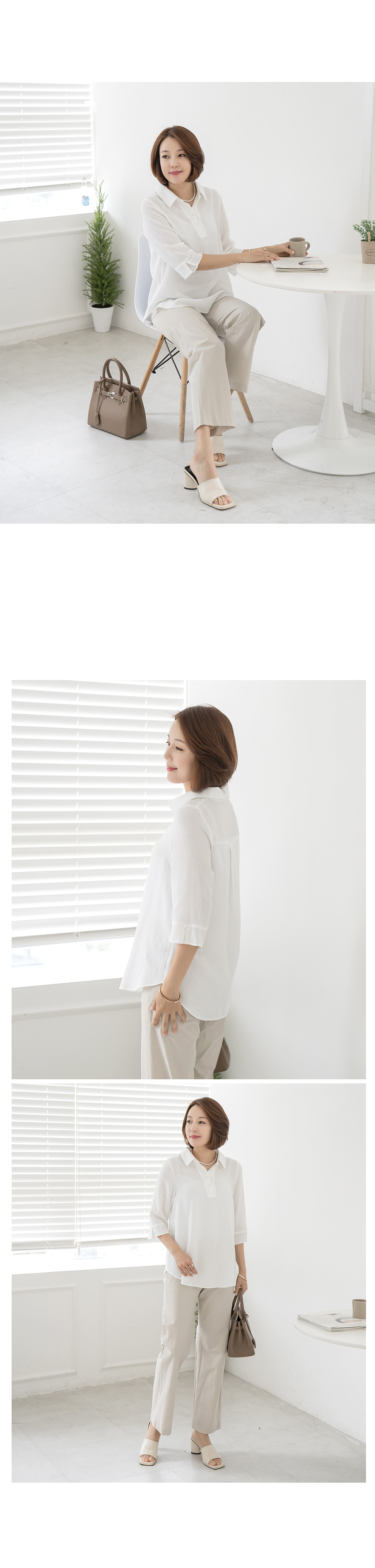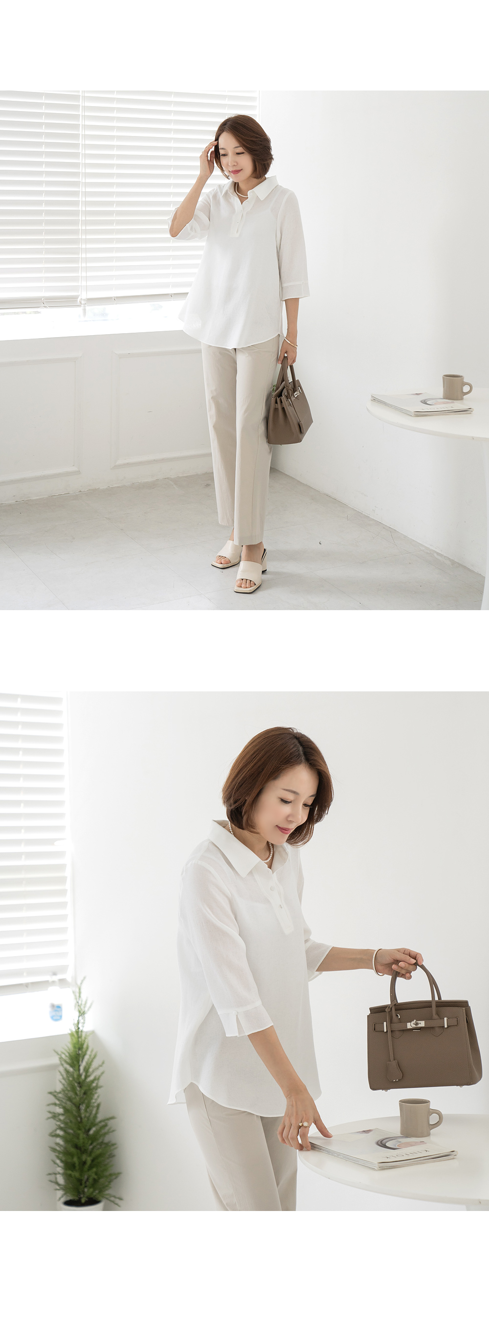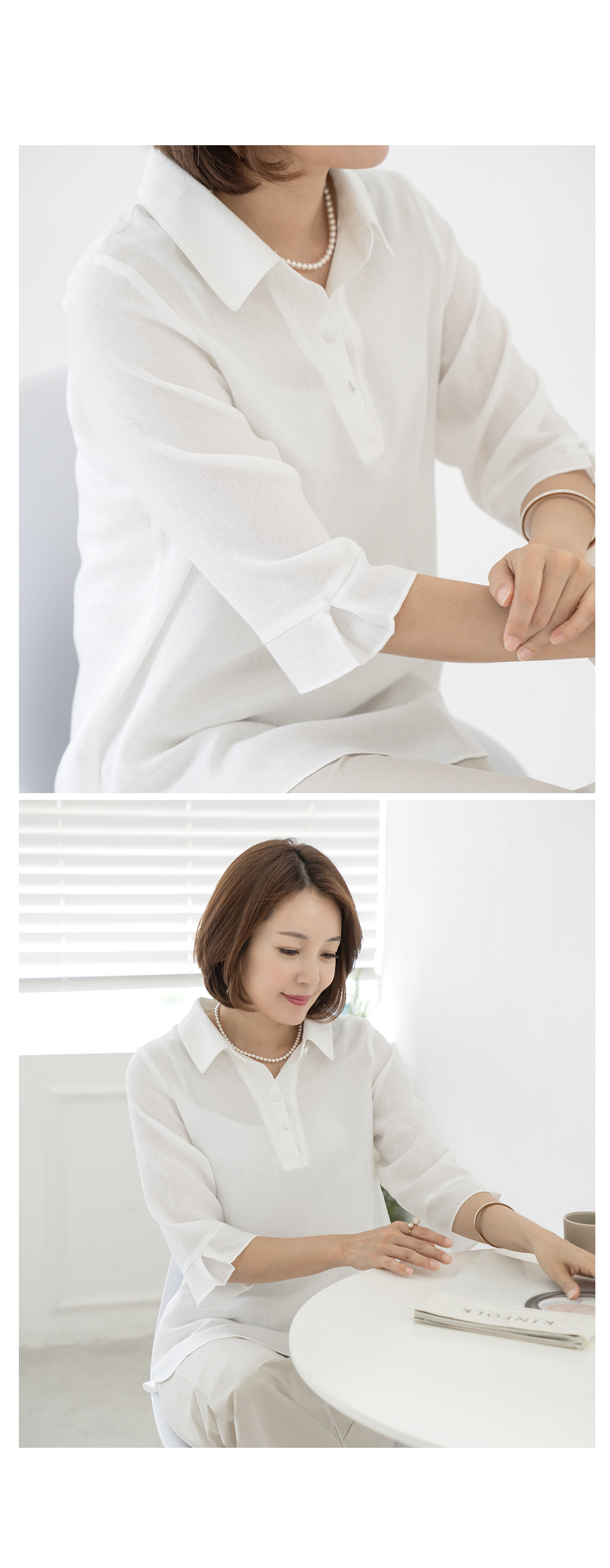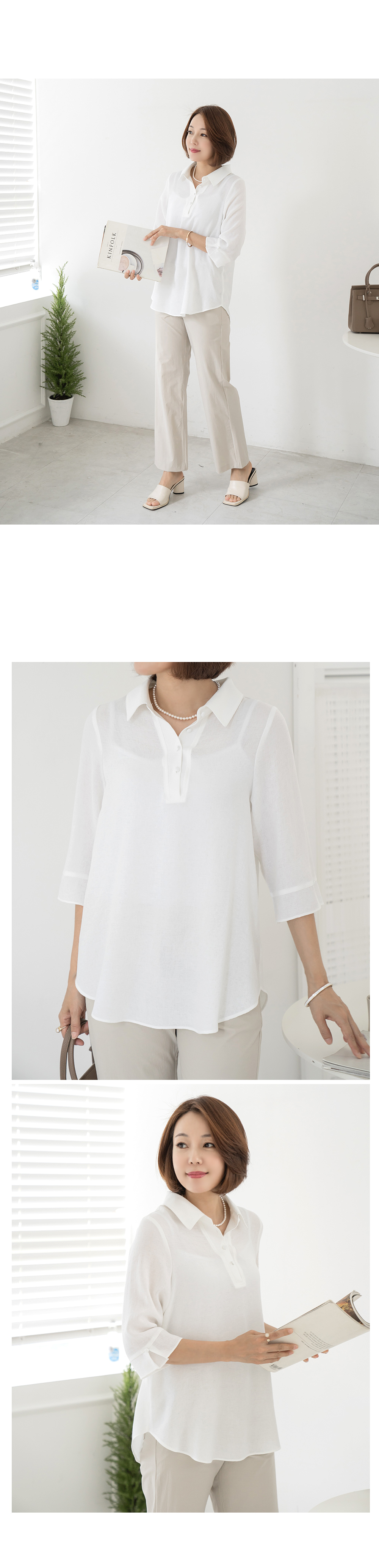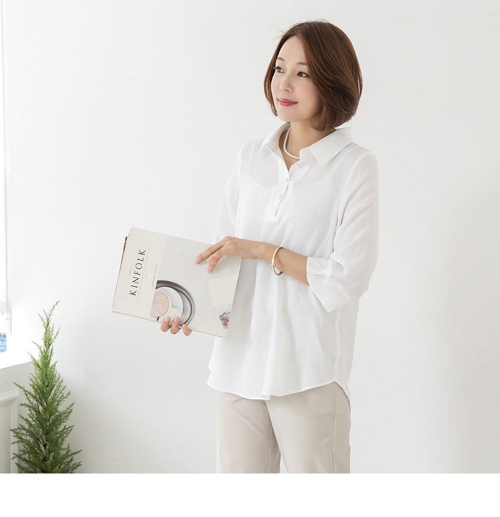 • Bi-collar bean button blouse-BL2405004-