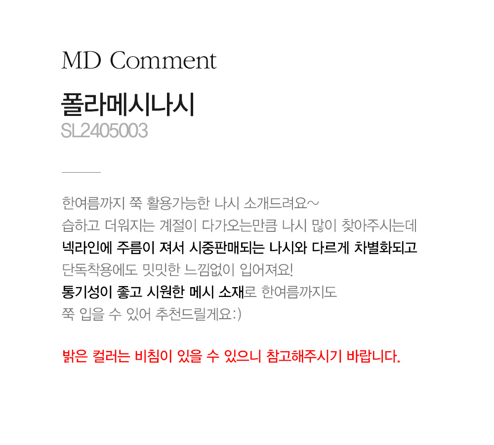 - 밝은 컬러는 비침이 있을 수 있으니 참고해주시기 바랍니다.