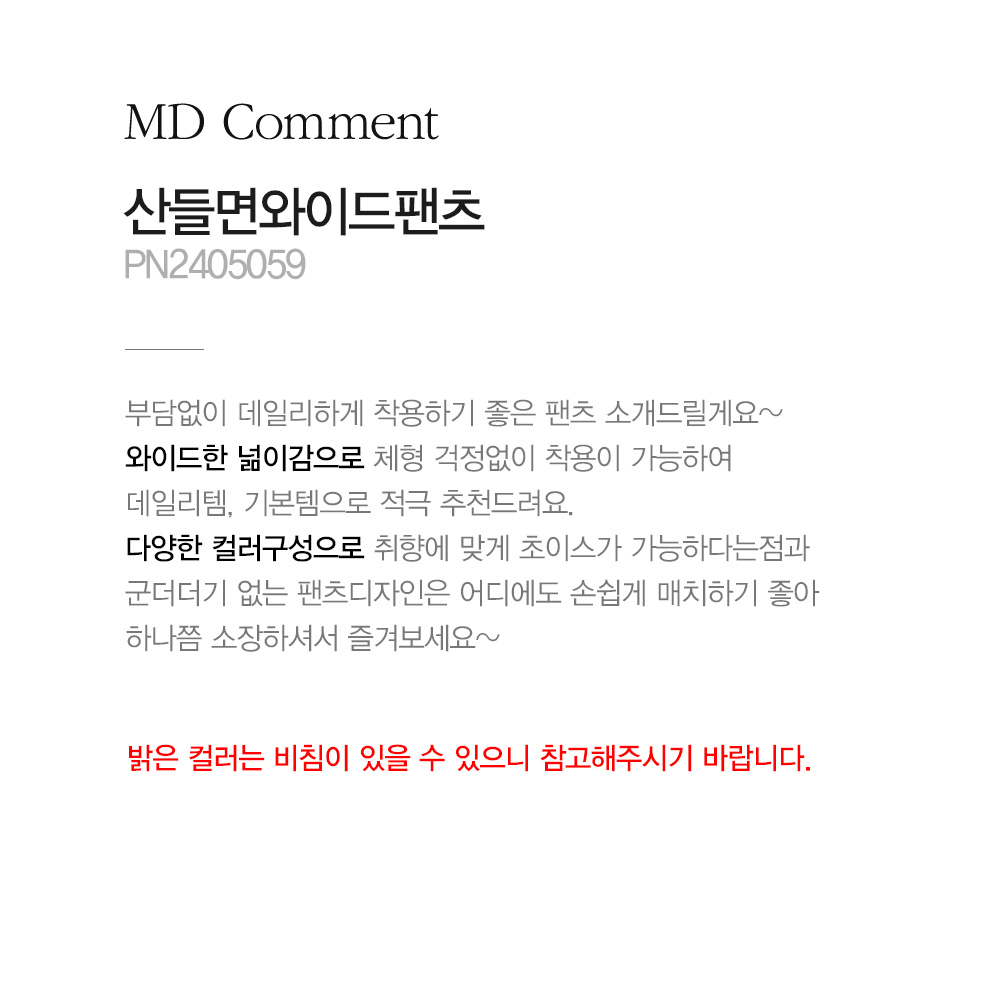 - 밝은 컬러는 비침이 있을 수 있으니 참고해주시기 바랍니다.