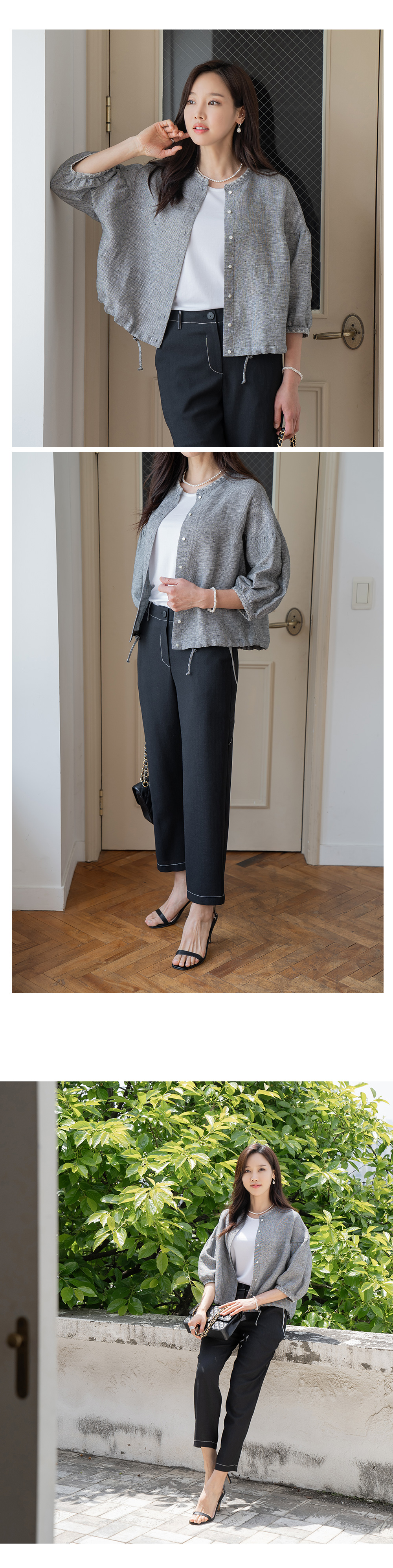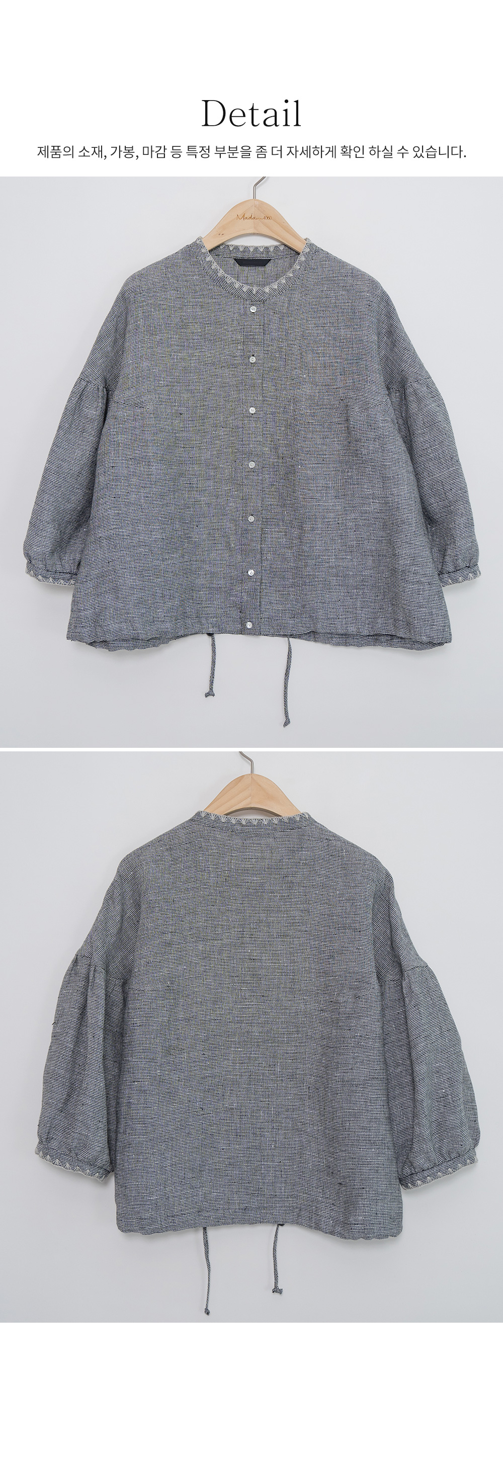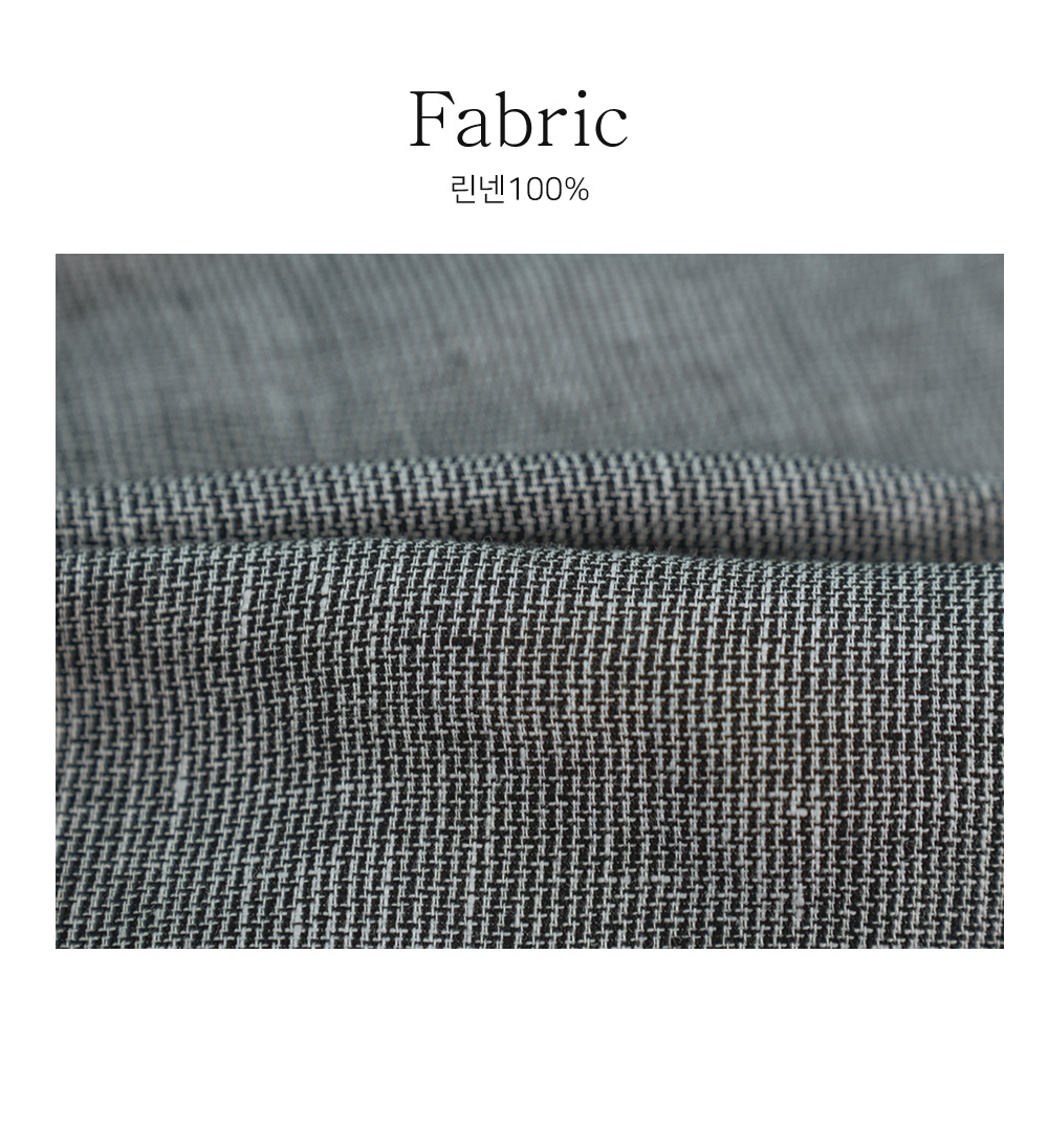린넨(마) - 아마식물의 줄기에서 얻은 천연섬유로 흡수력과 발산성이 뛰어나며 열을 분산시키고 통기성이 좋아 여름에 땀으로 인해 소재가 몸에 달라붙지 않아 산뜻한 감촉으로 착용하실 수 있습니다.