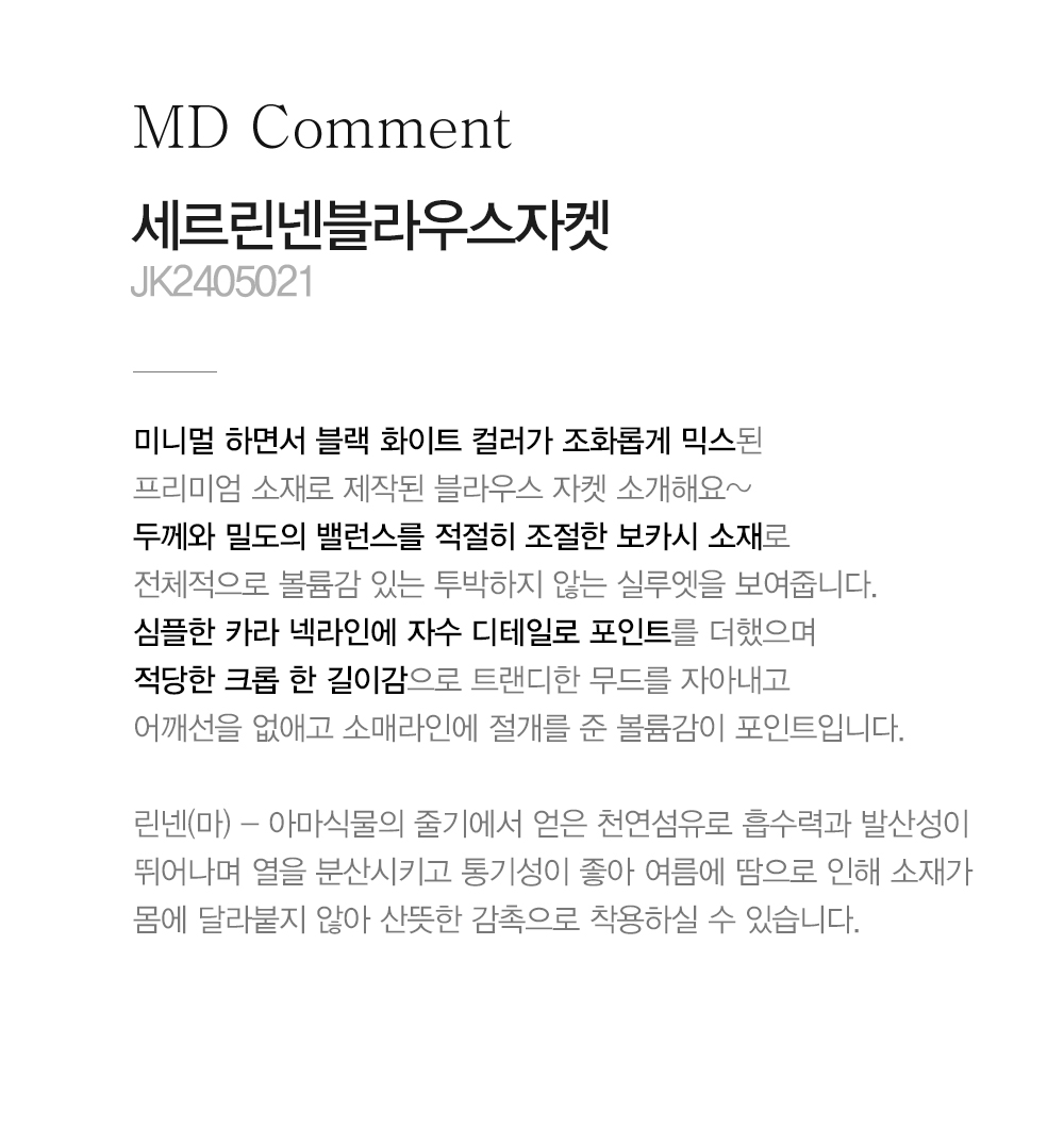 마담4060의 모든 의류 제품은 처음 1~2회 드라이크리닝을 권장합니다.