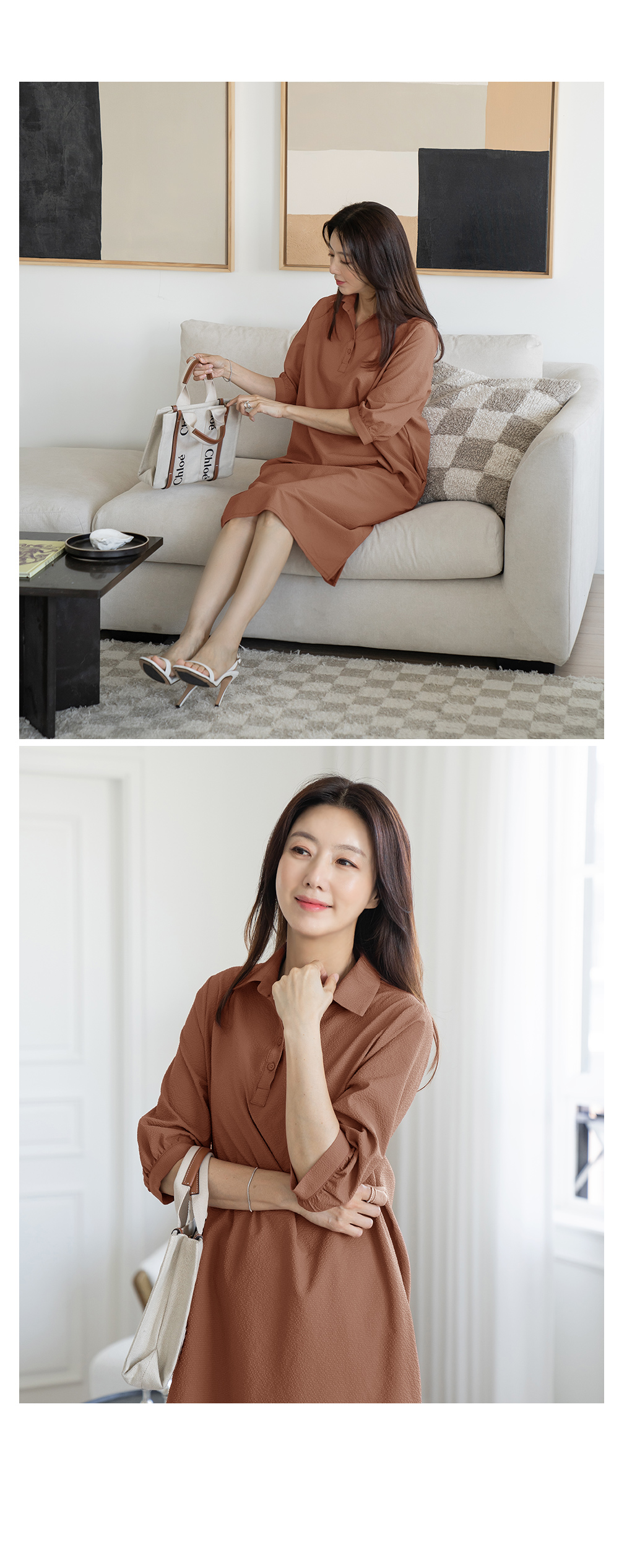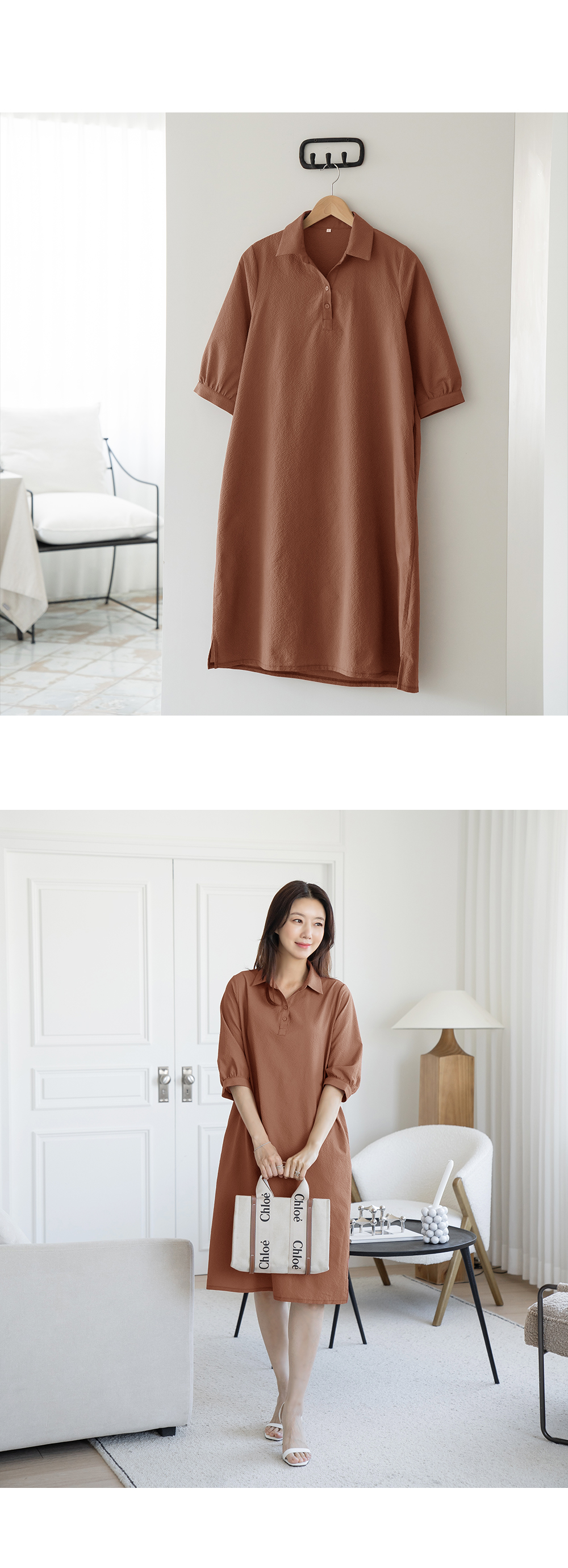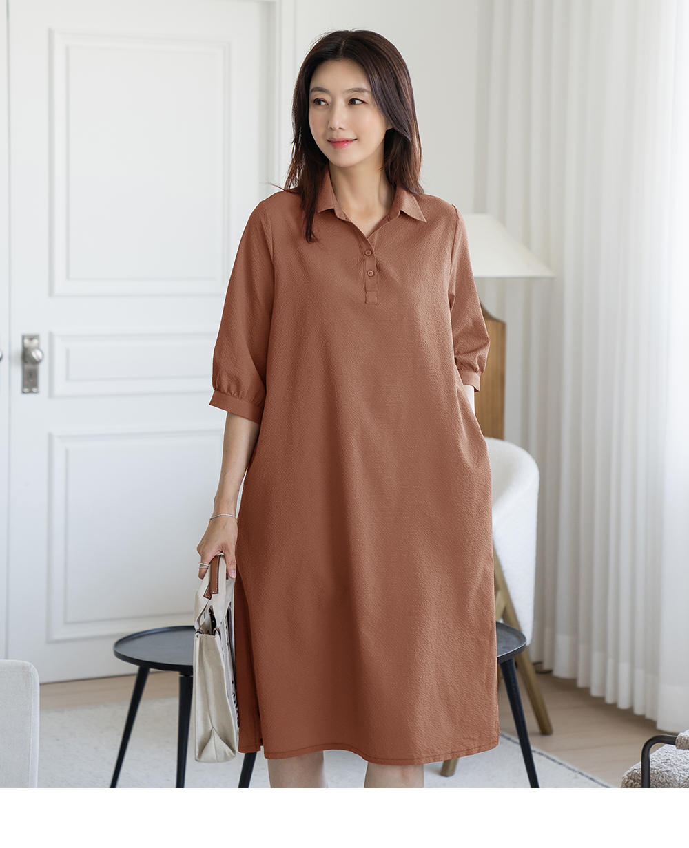 • Line collar long dress-OP2406002-