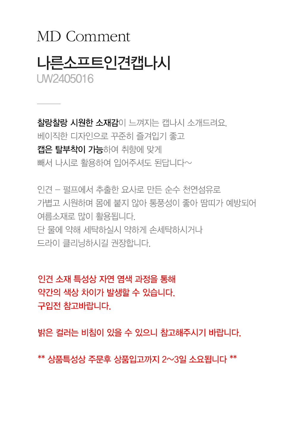 - 인견 소재 특성상 자연 염색 과정을 통해 약간의 색상 차이가 발생할 수 있습니다.