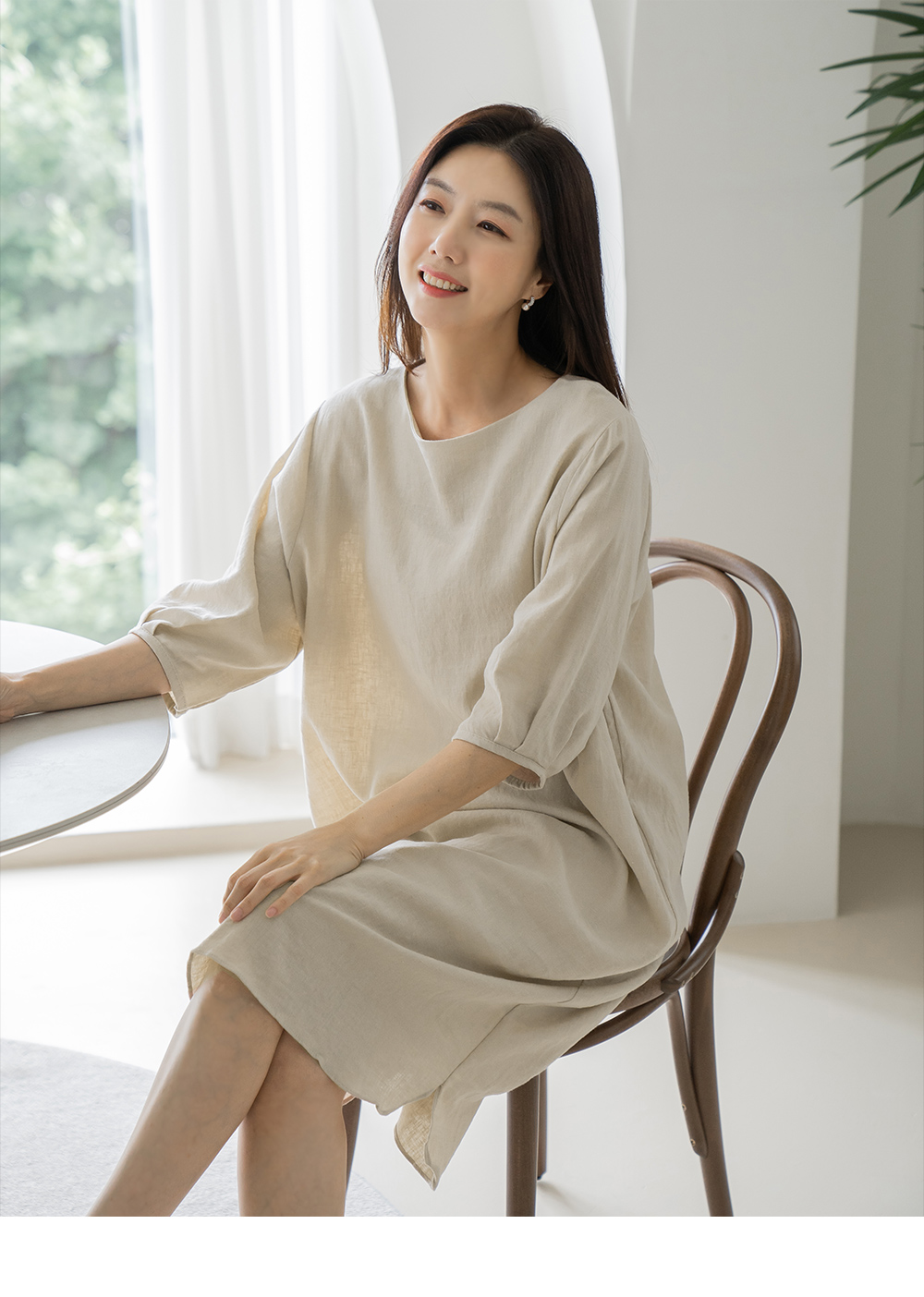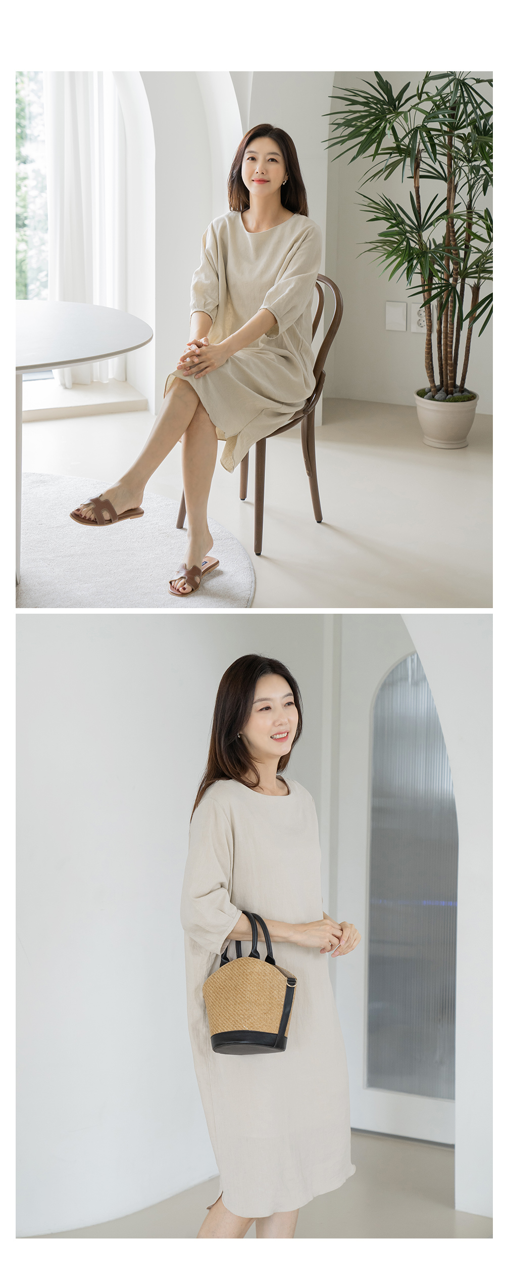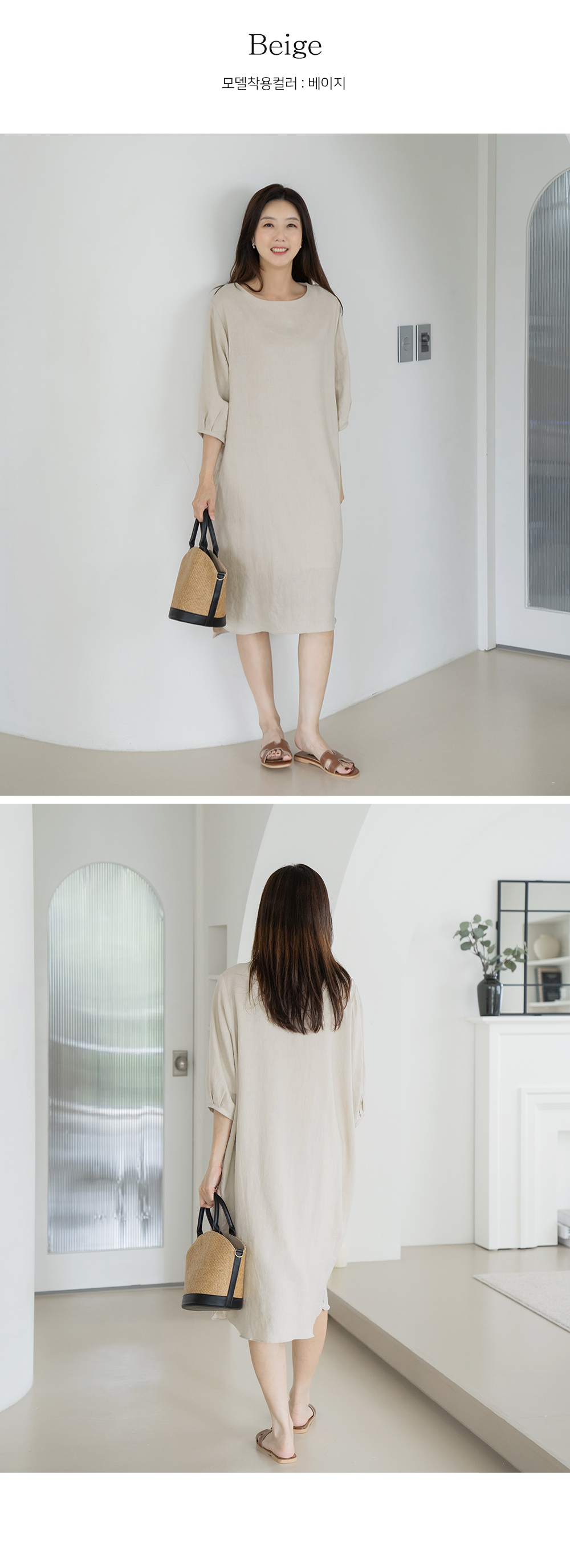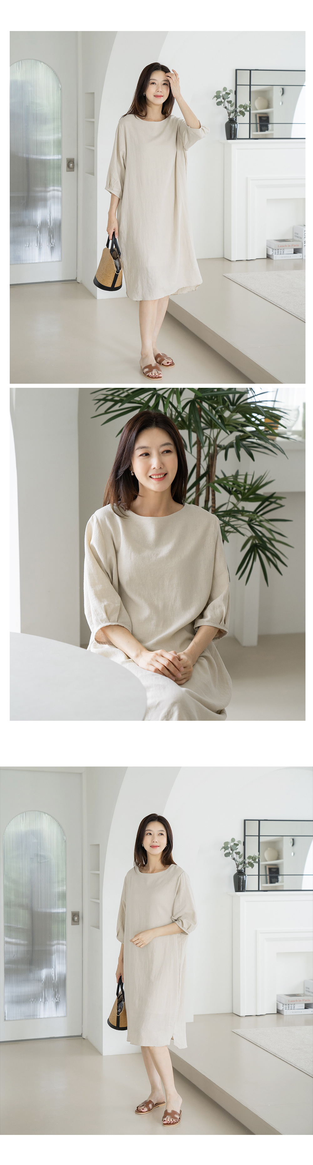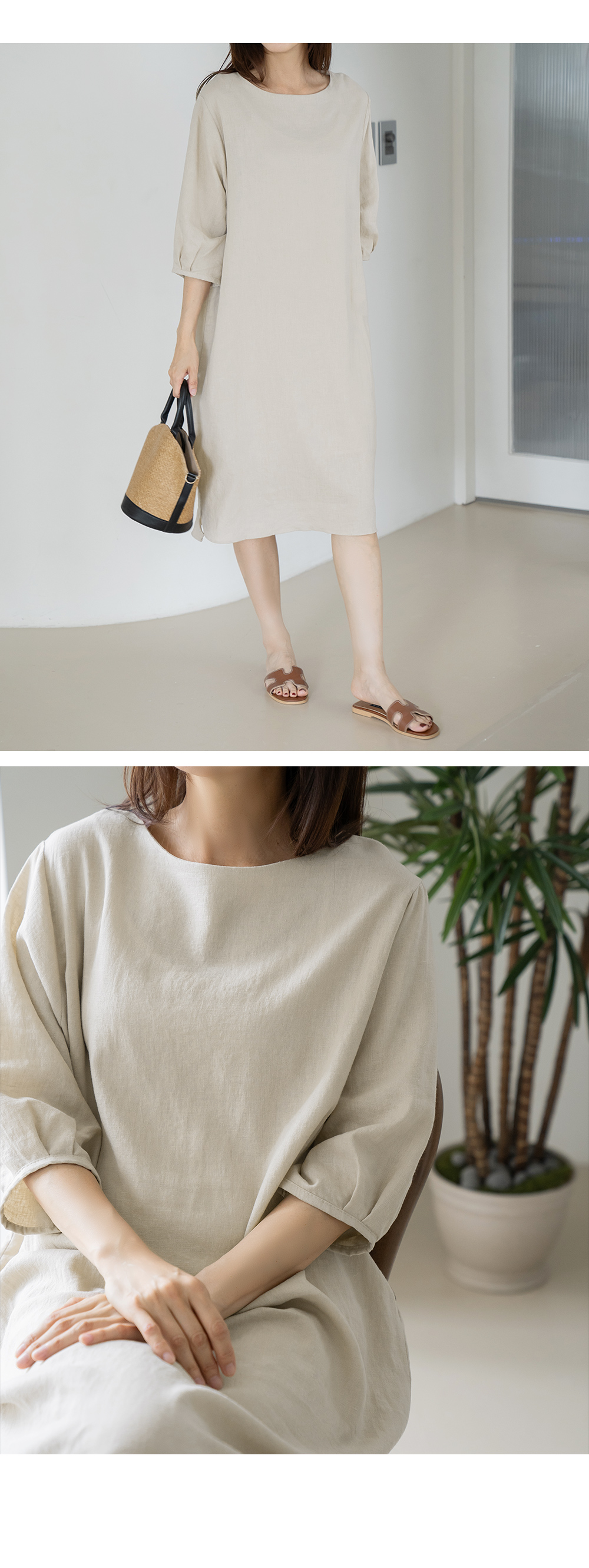 • Basic boxy linen dress-OP2406033-