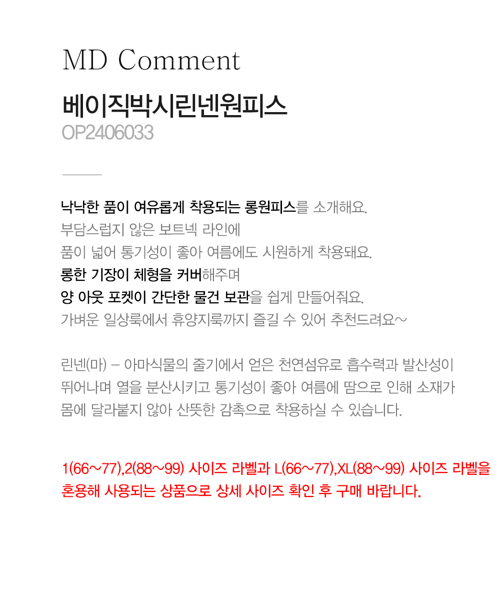 린넨(마) - 아마식물의 줄기에서 얻은 천연섬유로 흡수력과 발산성이 뛰어나며 열을 분산시키고 통기성이 좋아 여름에 땀으로 인해 소재가 몸에 달라붙지 않아 산뜻한 감촉으로 착용하실 수 있습니다.