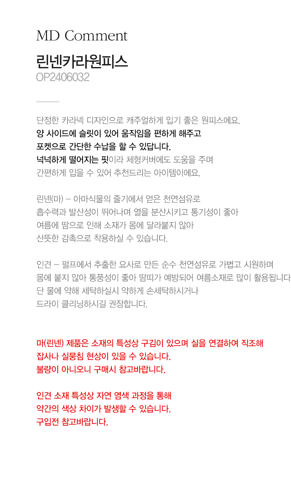 - 마(린넨) 제품은 소재의 특성상 구김이 있으며 실을 연결하여 직조해 잡사나 실뭉침 현상이 있을 수 있습니다. 불량이 아니오니 구매시 참고바랍니다.