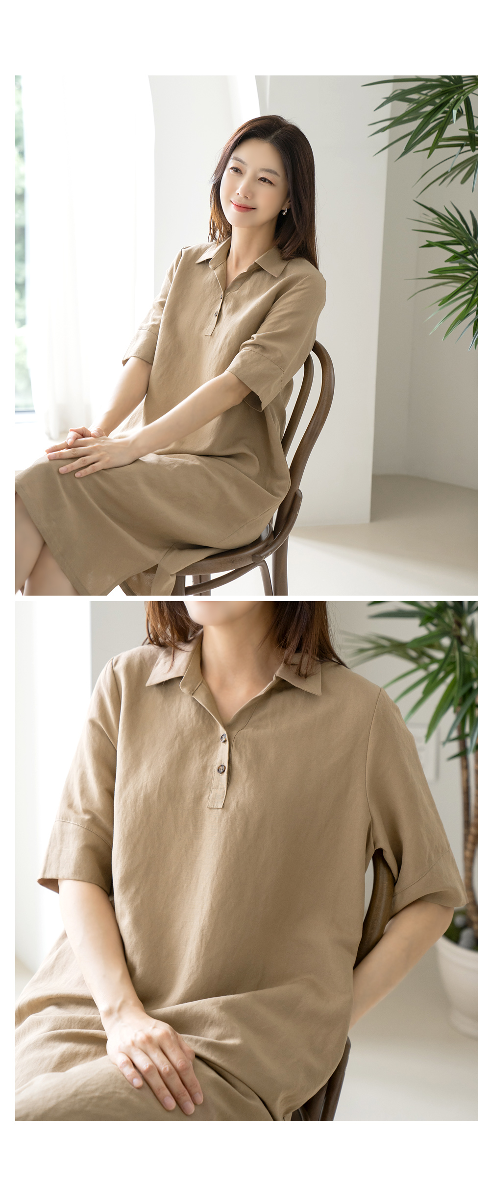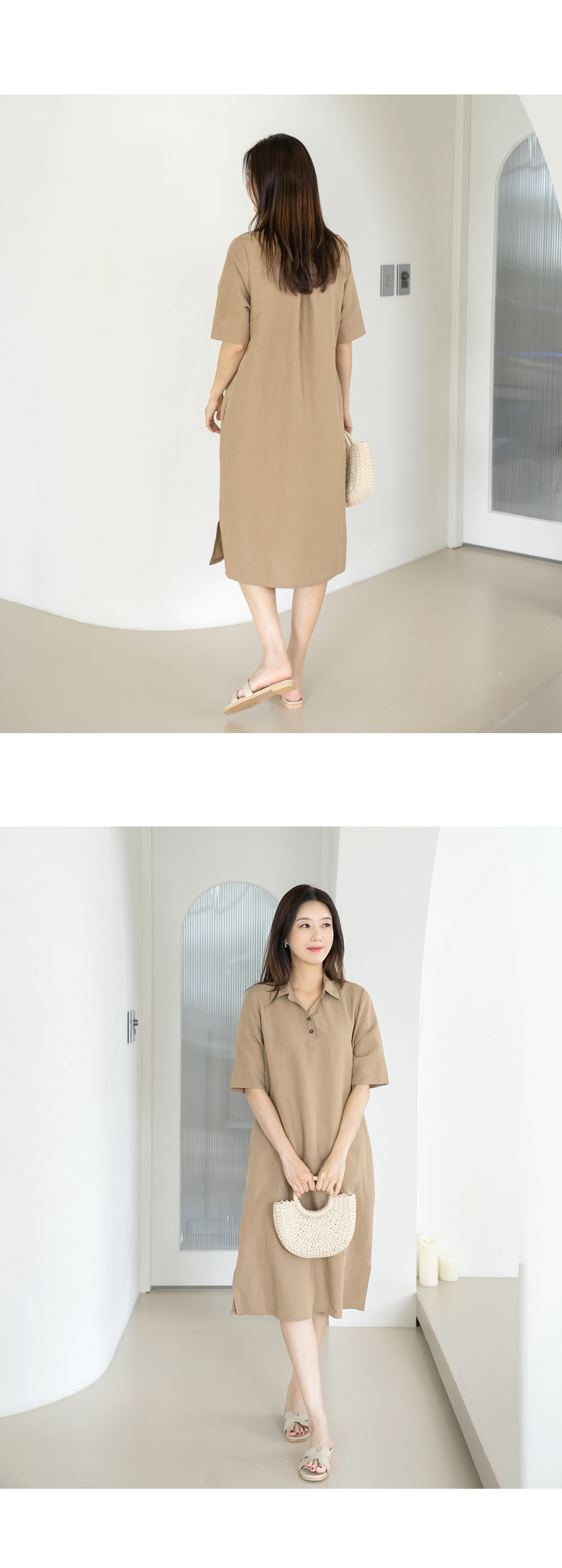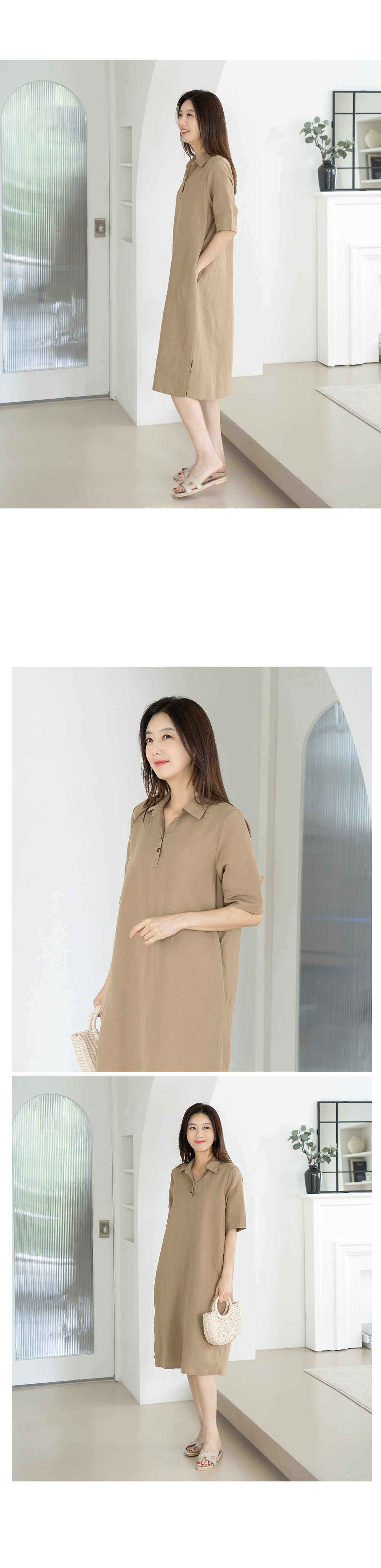 • Linen collar dress-OP2406032-
