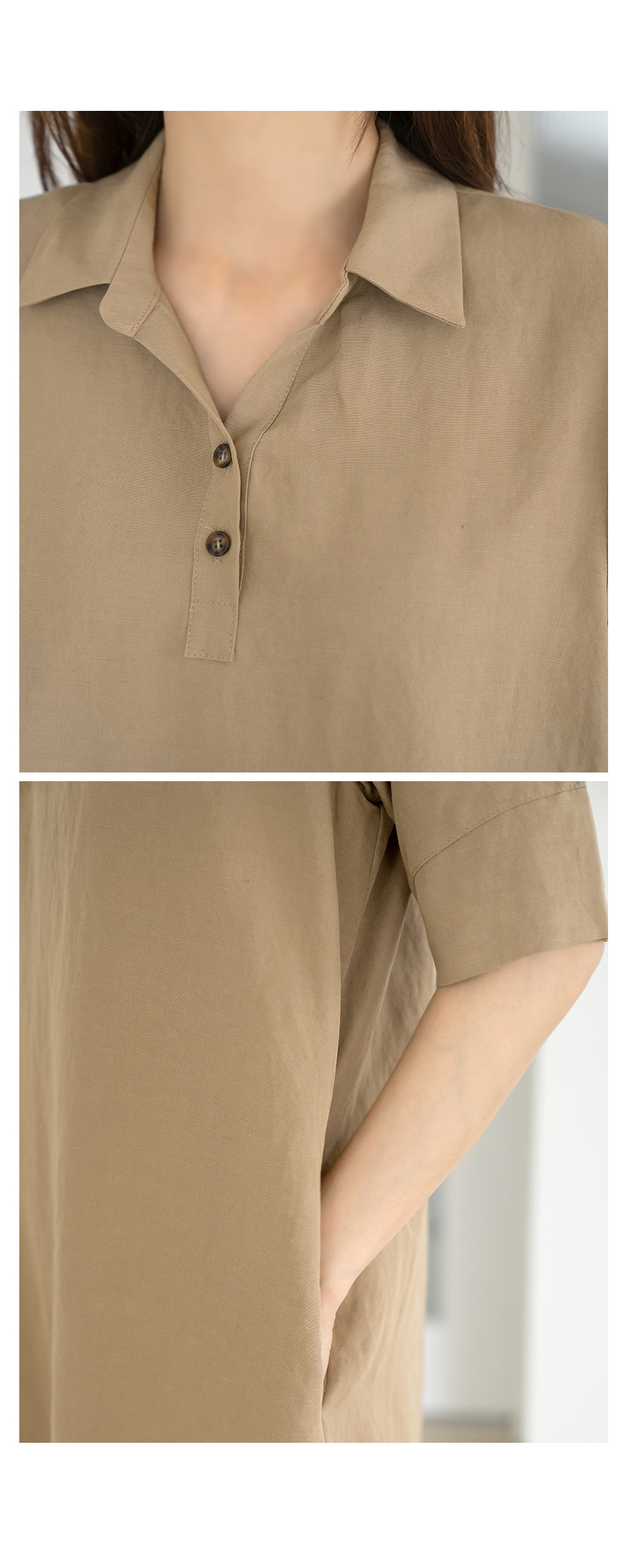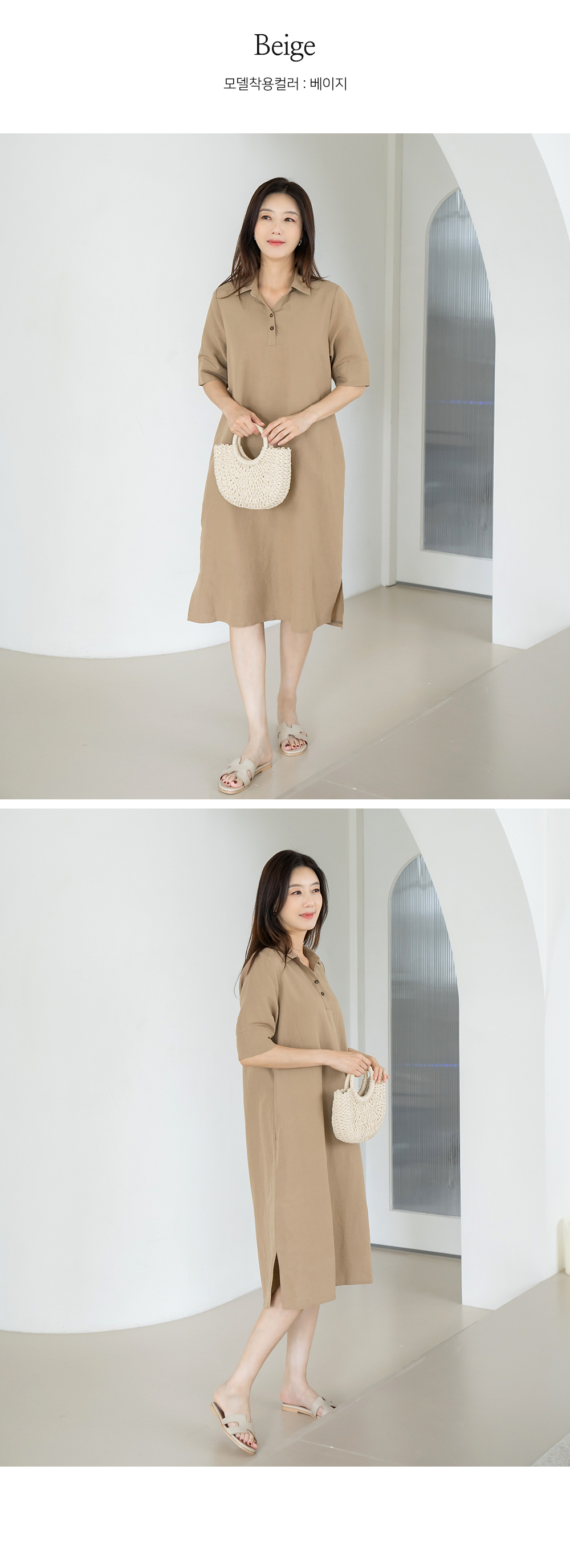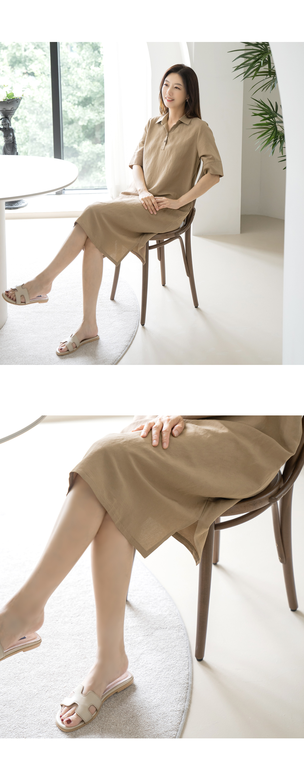 • Linen collar dress-OP2406032-