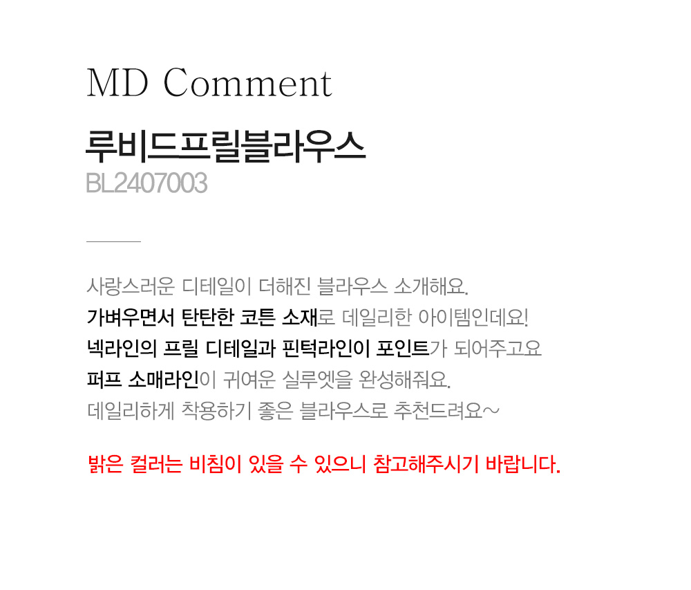 - 밝은 컬러는 비침이 있을 수 있으니 참고해주시기 바랍니다.
