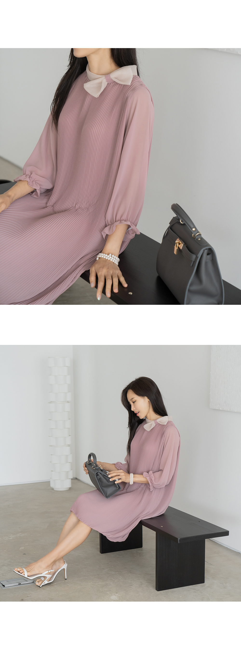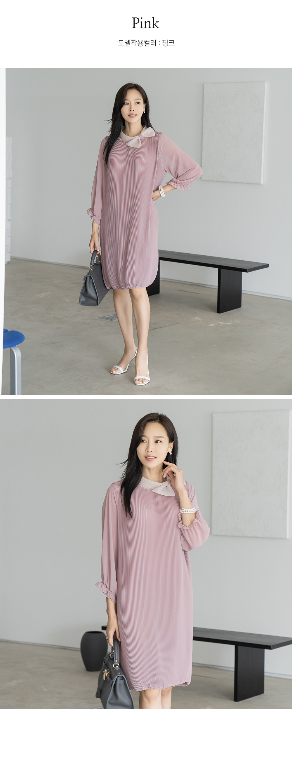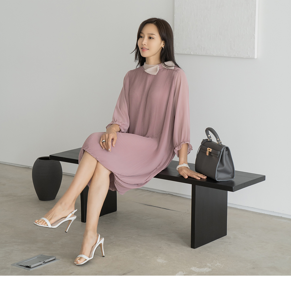 • [Classy Madame] Ribbon Pleated Balloon Dress-OP2407020-