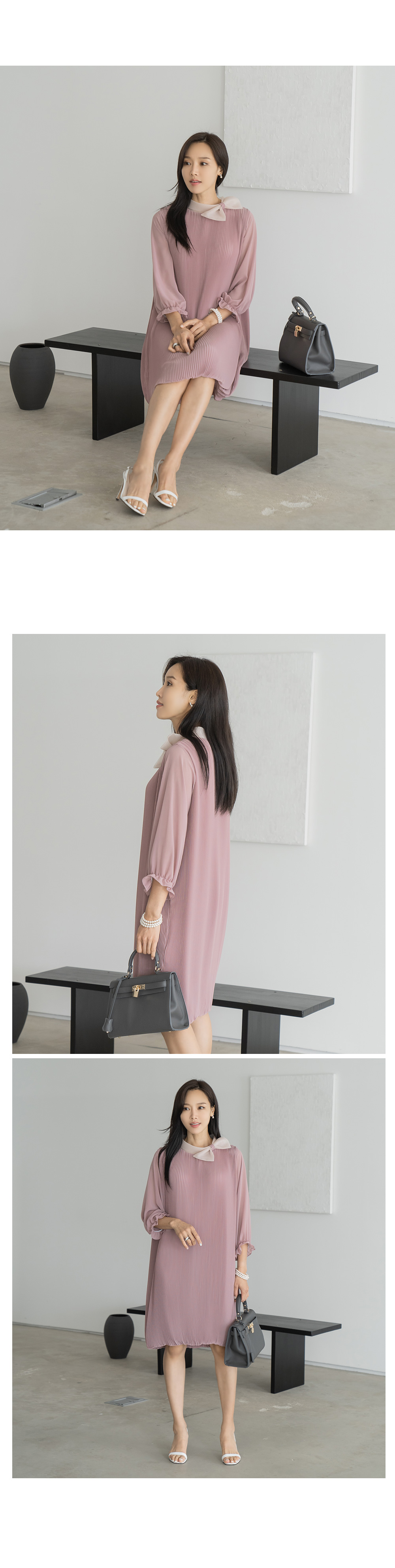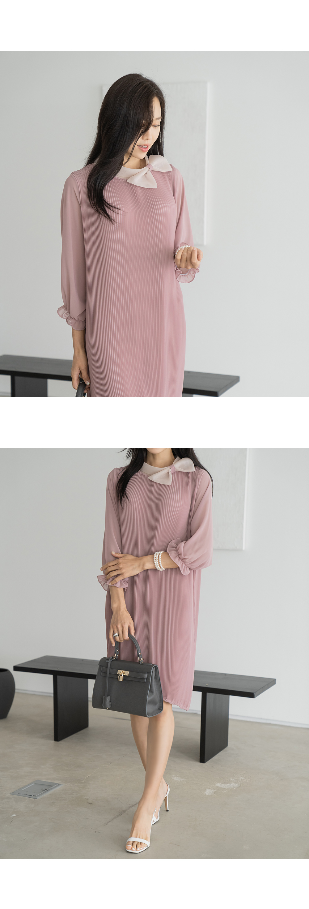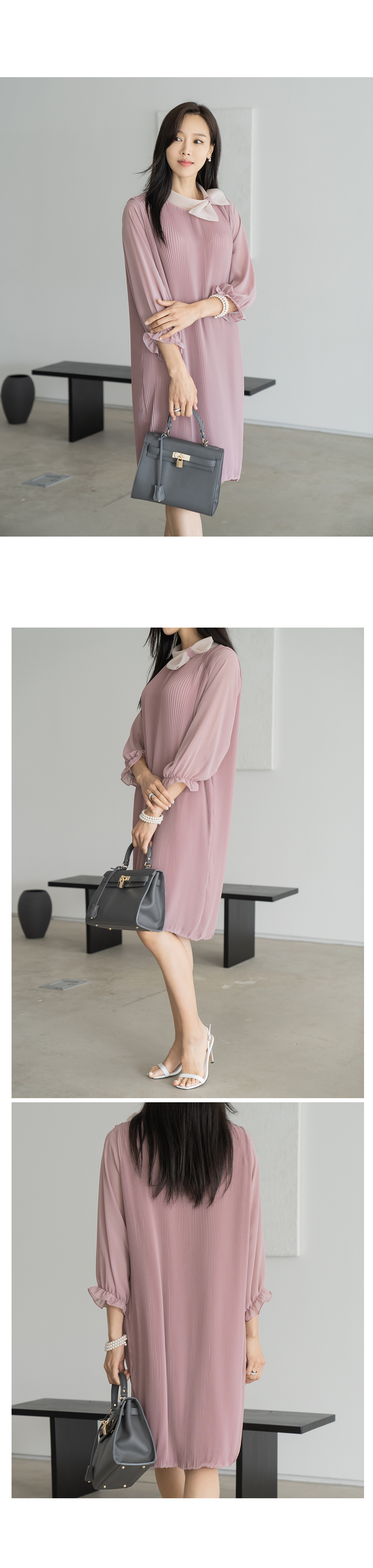 • [Classy Madame] Ribbon Pleated Balloon Dress-OP2407020-