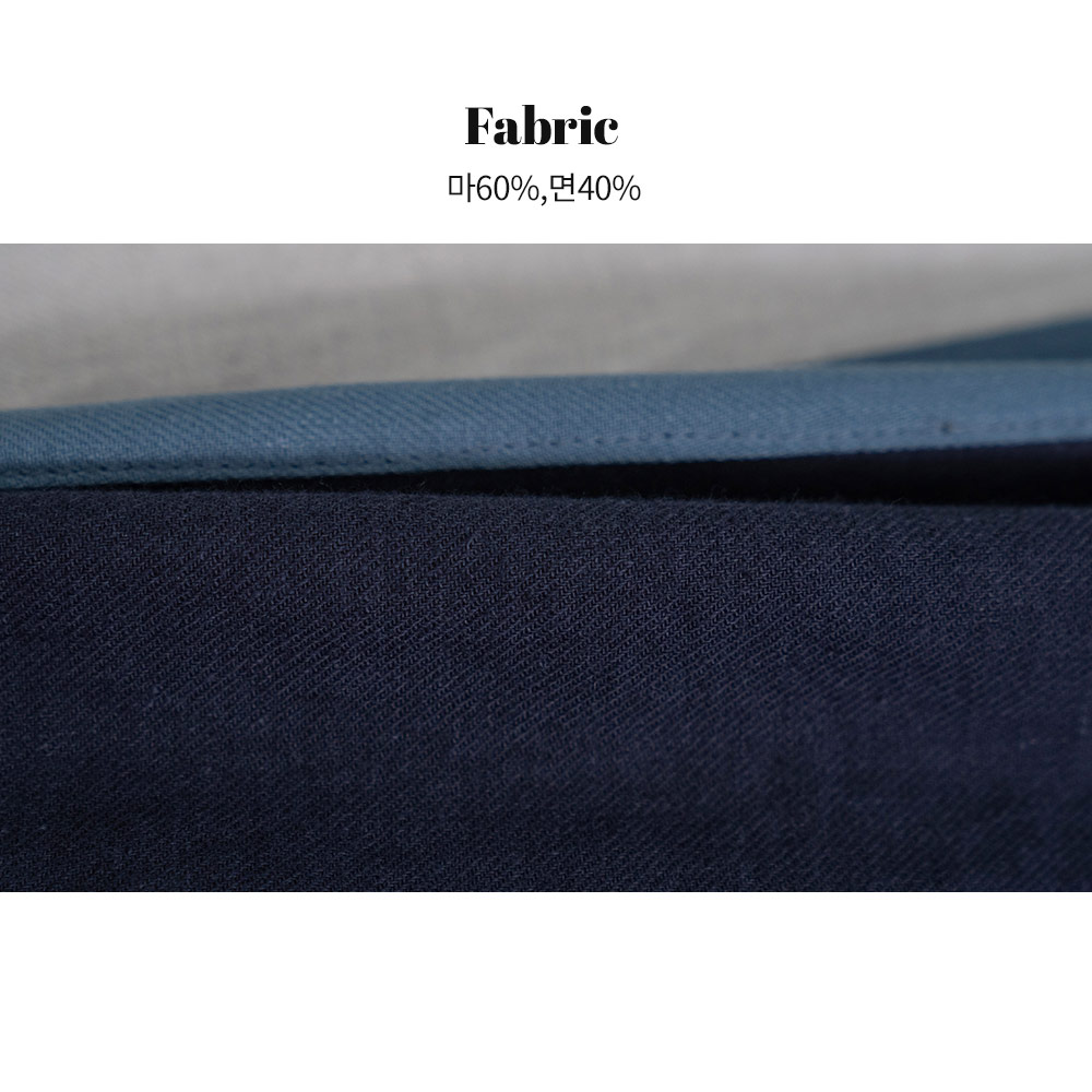 린넨(마) - 아마식물의 줄기에서 얻은 천연섬유로 흡수력과 발산성이 뛰어나며 열을 분산시키고 통기성이 좋아 여름에 땀으로 인해 소재가 몸에 달라붙지 않아 산뜻한 감촉으로 착용하실 수 있습니다.
