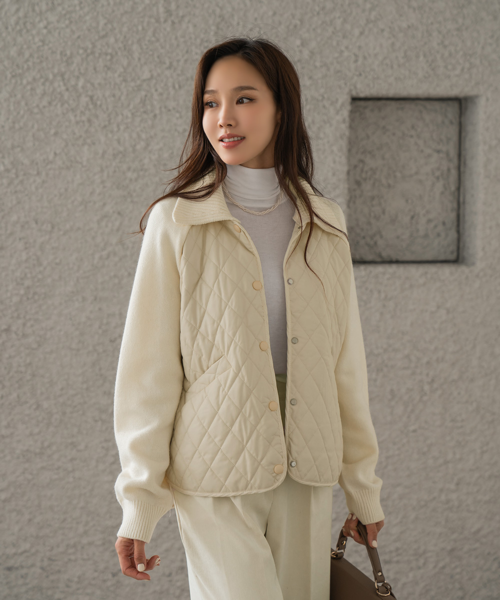 • [Classy Madame] Cheren Collar Quilted Jumper-JP2410020-