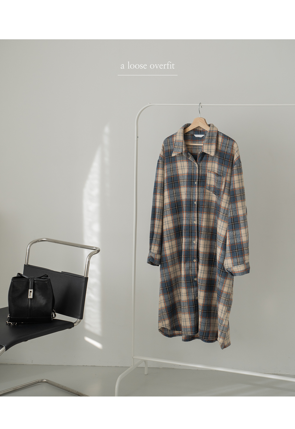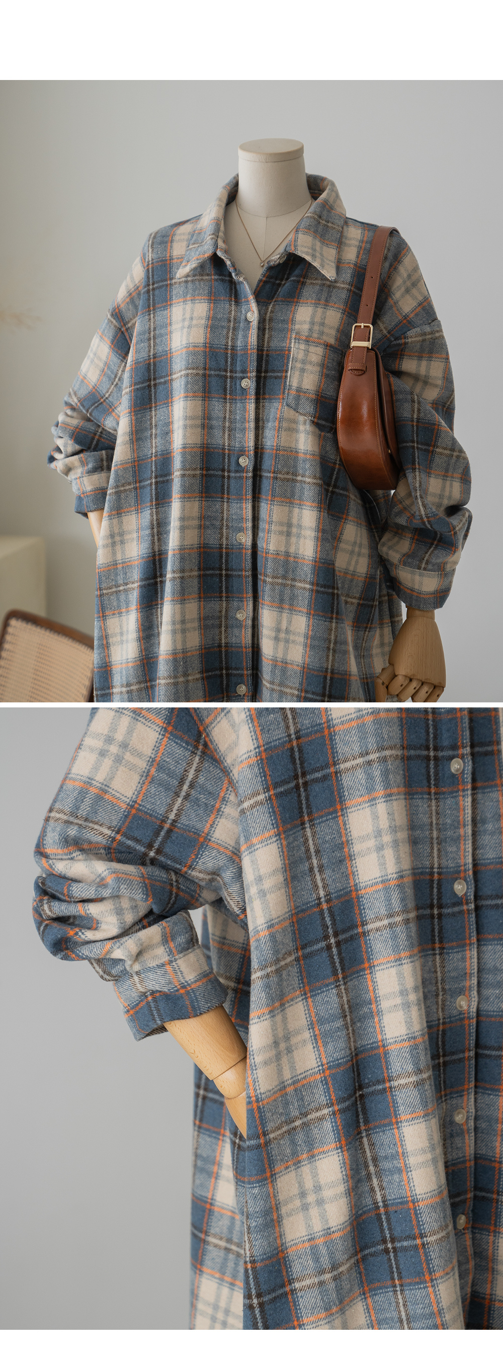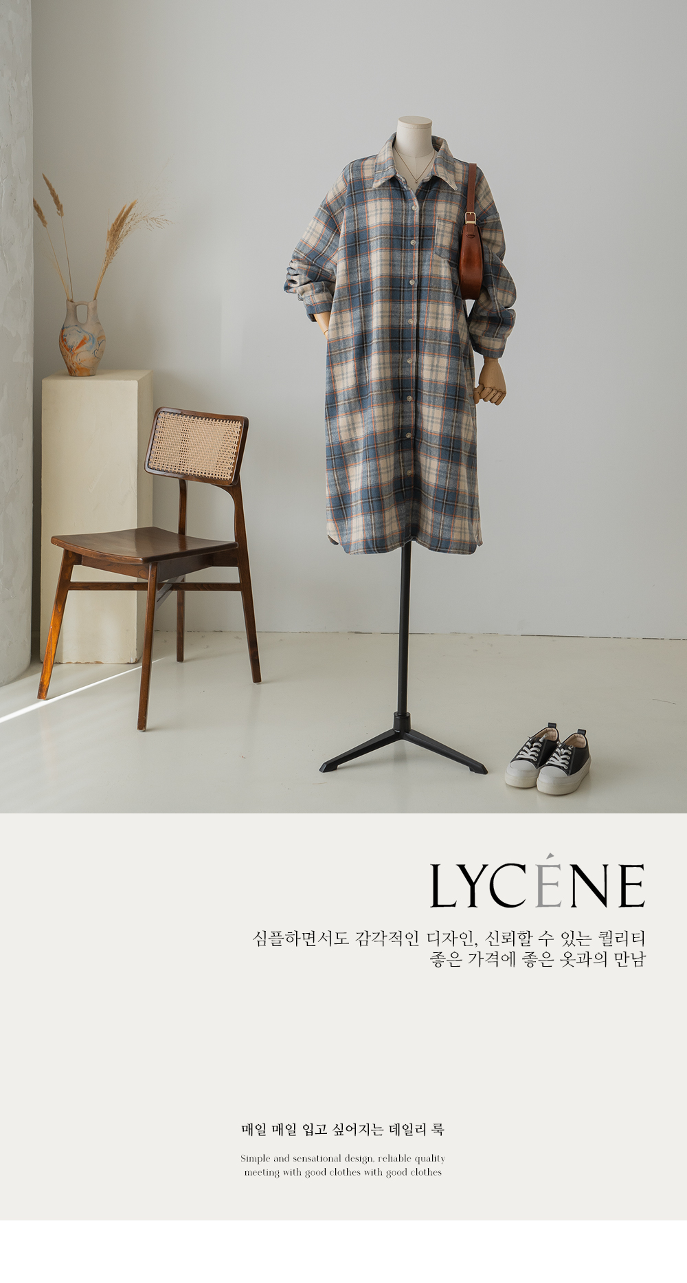 • [Risen] Pinta Check Long Shirt Dress-LOP2412003-