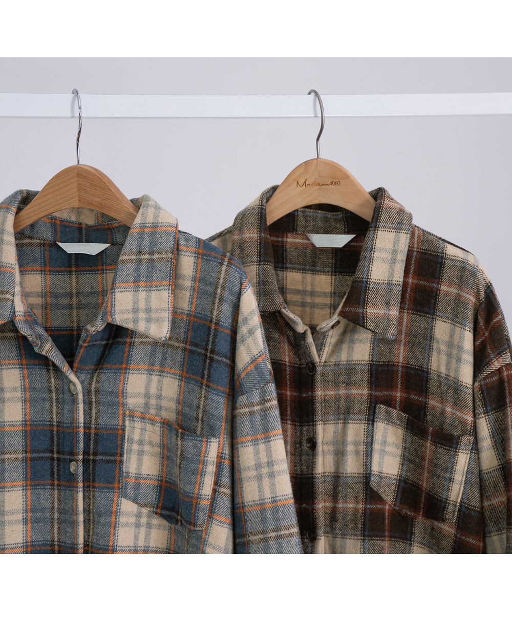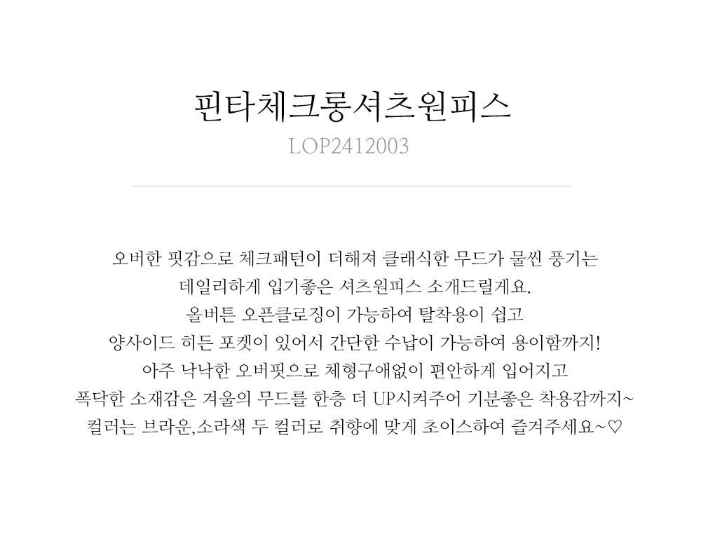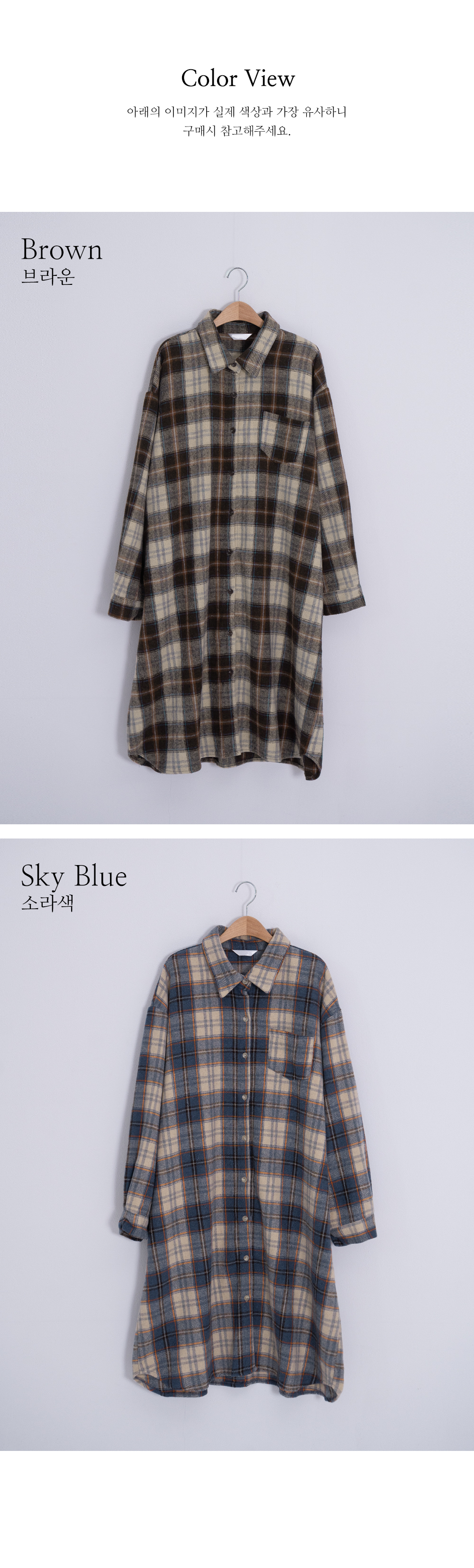 • [Risen] Pinta Check Long Shirt Dress-LOP2412003-