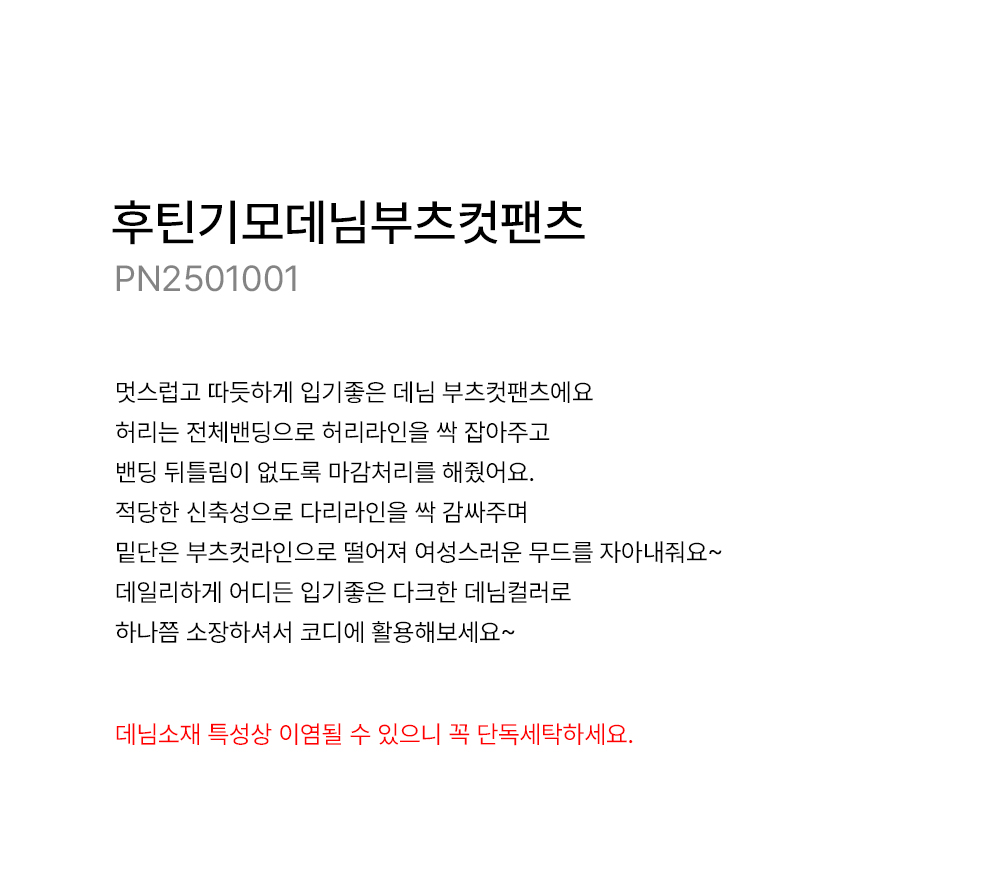 - 데님소재 특성상 이염될 수 있으니 꼭 단독세탁하세요.