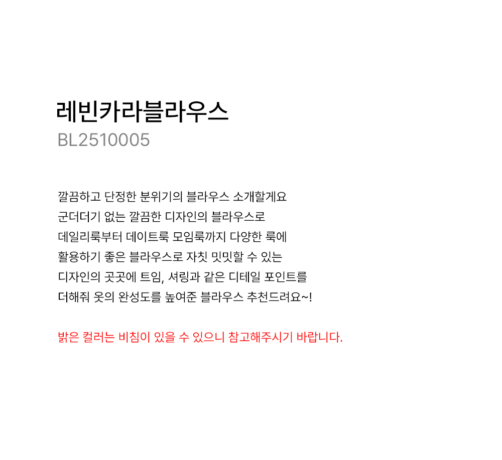 - 밝은 컬러는 비침이 있을 수 있으니 참고해주시기 바랍니다.