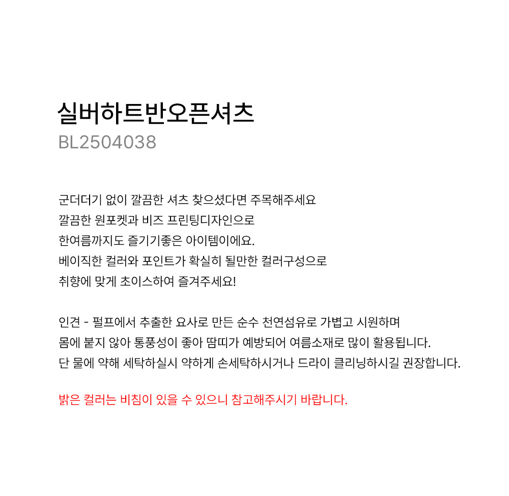 - 밝은 컬러는 비침이 있을 수 있으니 참고해주시기 바랍니다.