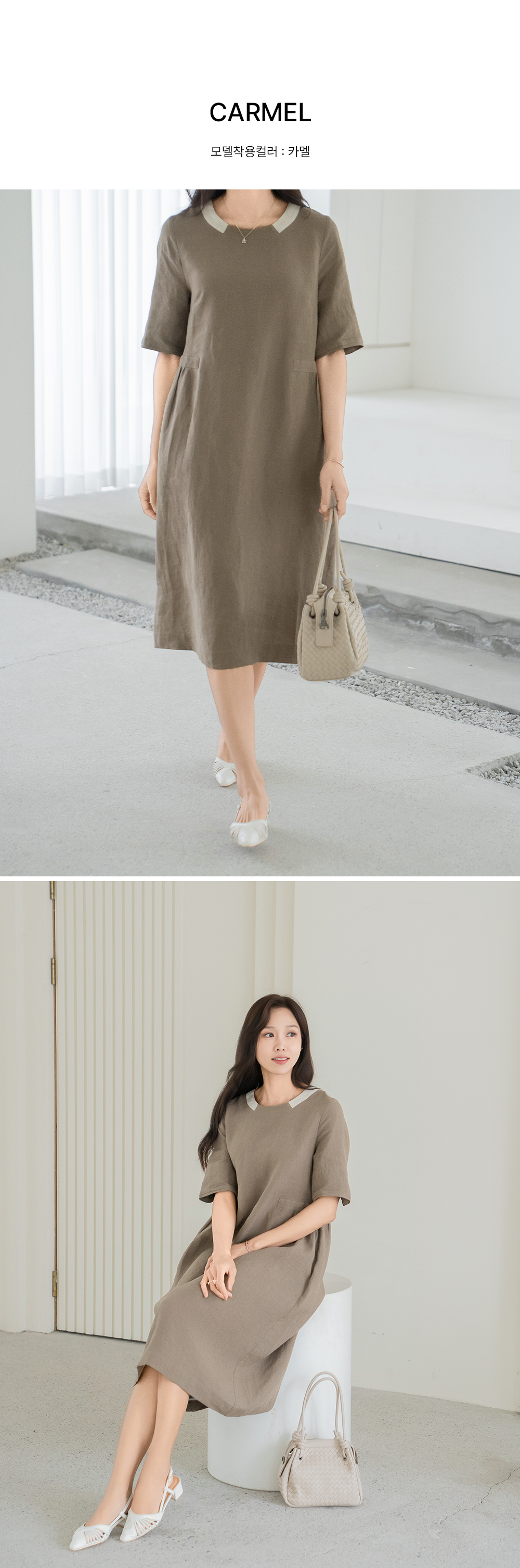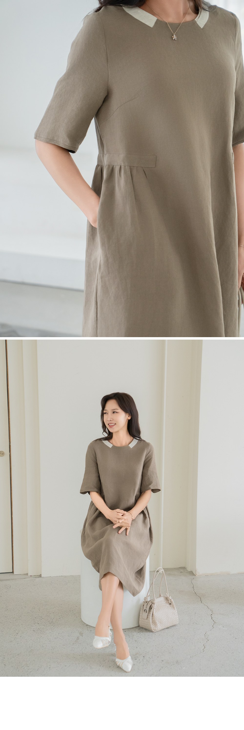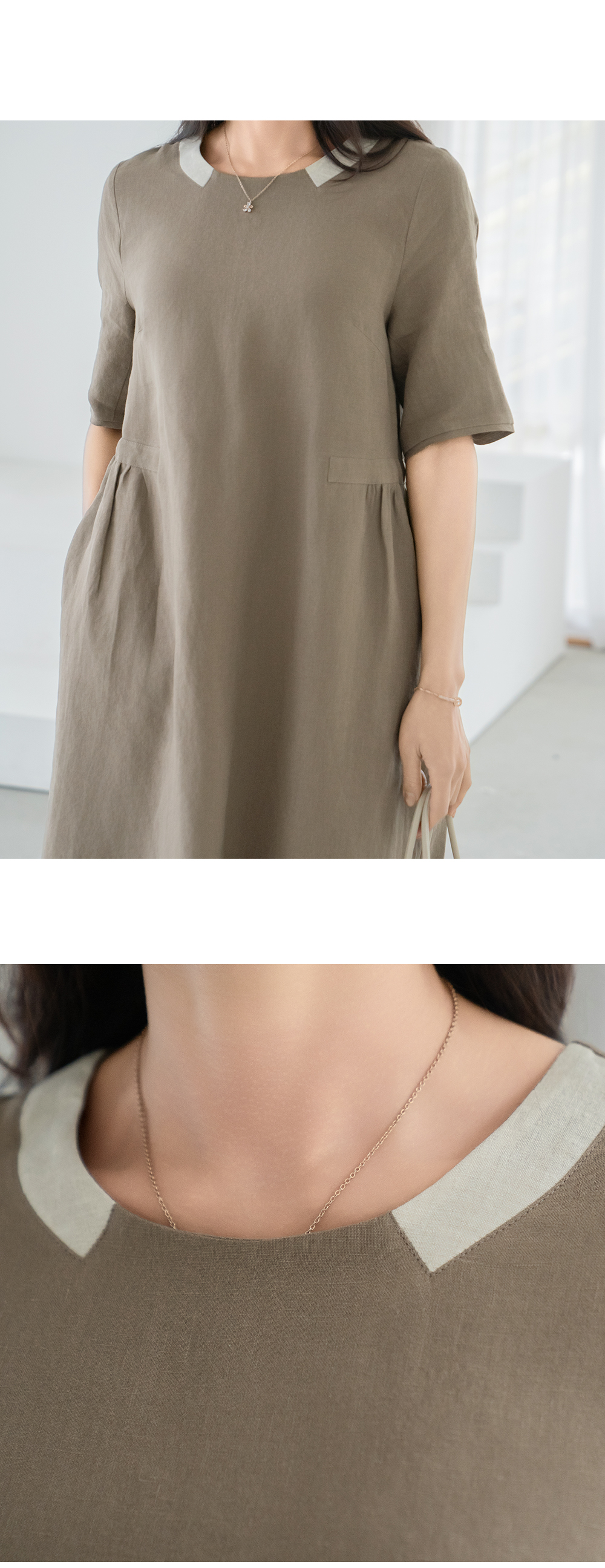• [Classy Madam] Two-tone Linen Pocket One-Piece - OP2505016 -