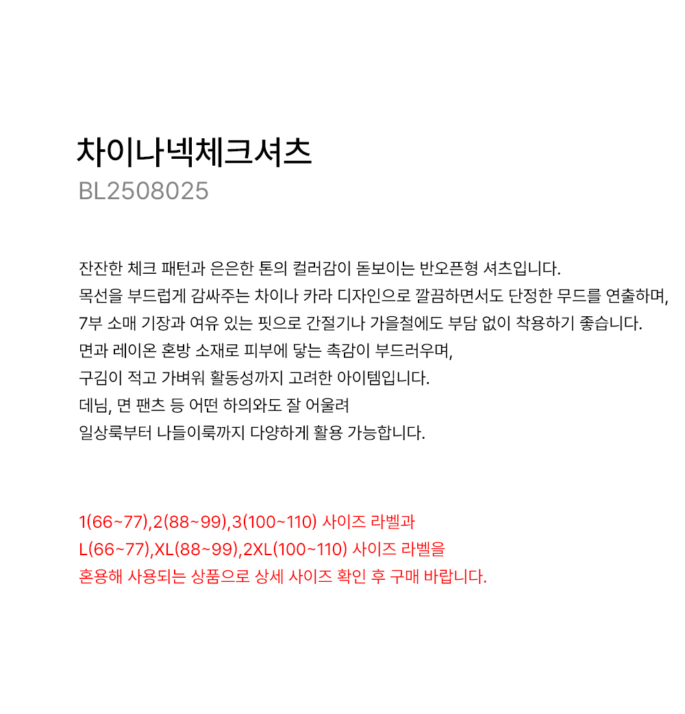 - 1(66~77),2(88~99),3(100~110) 사이즈 라벨과 L(66~77),XL(88~99),2XL(100~110) 사이즈 라벨을 혼용해 사용되는 상품으로 상세 사이즈 확인 후 구매 바랍니다.