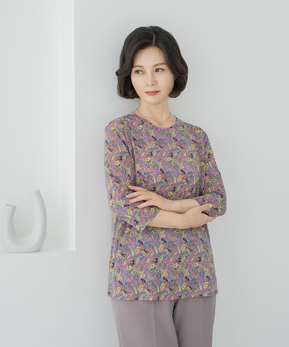 • Phase Flower Three-quarter Sleeve T-Shirt - TE2509003 -