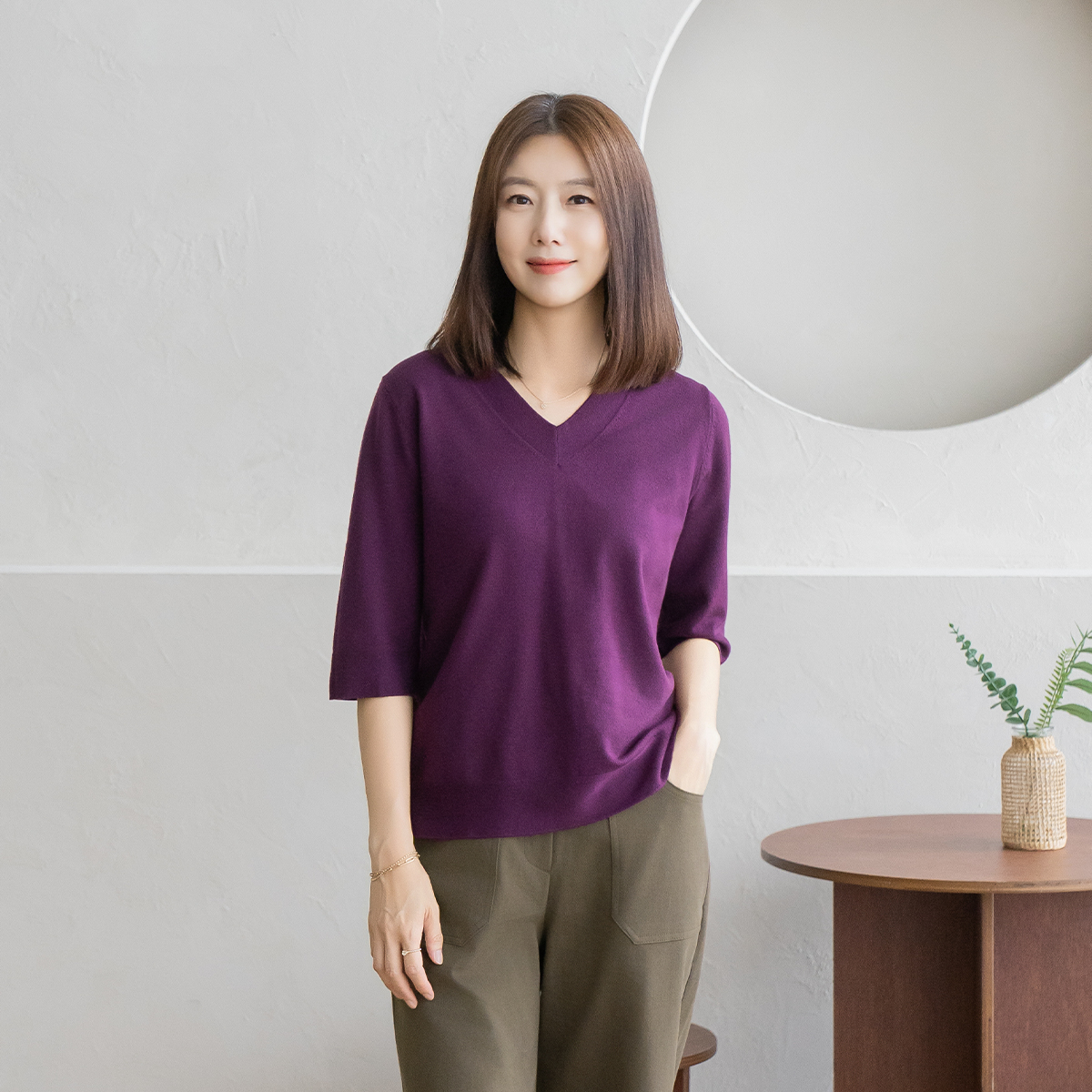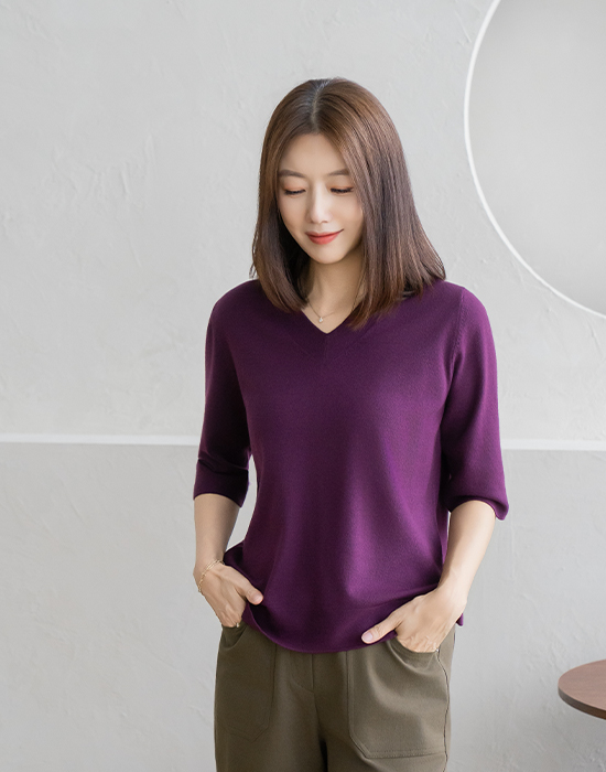 • Cashmere V-neck Knit-KN2509002-