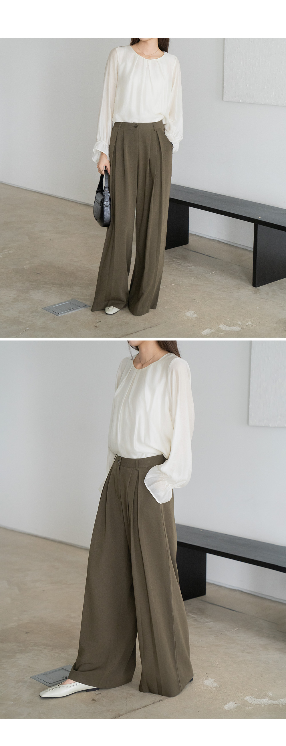 • [Modern Basic] Muted Pintuck Wide Pants - PN2509026