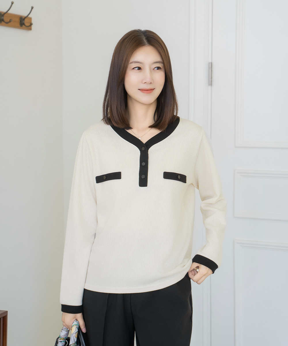 • V-neck ribbed t-shirt - TE2509031 -