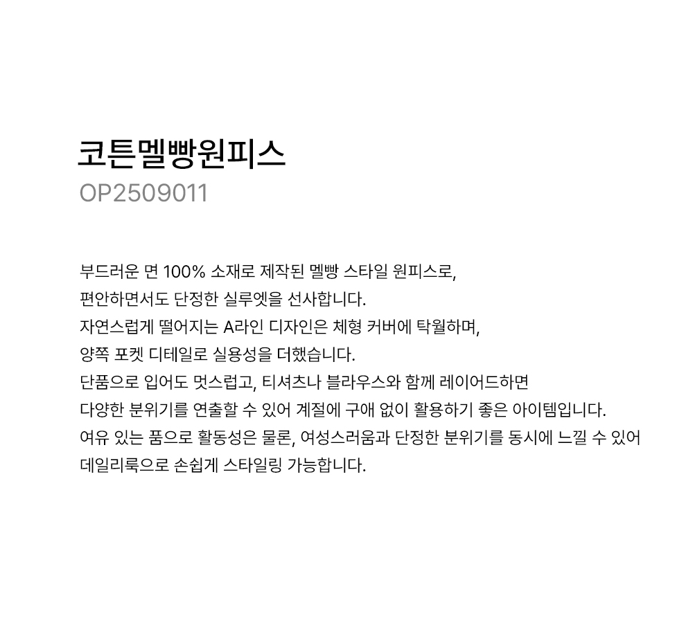 • [Natural Poem] Cotton Melange One-Piece - OP2509011 -