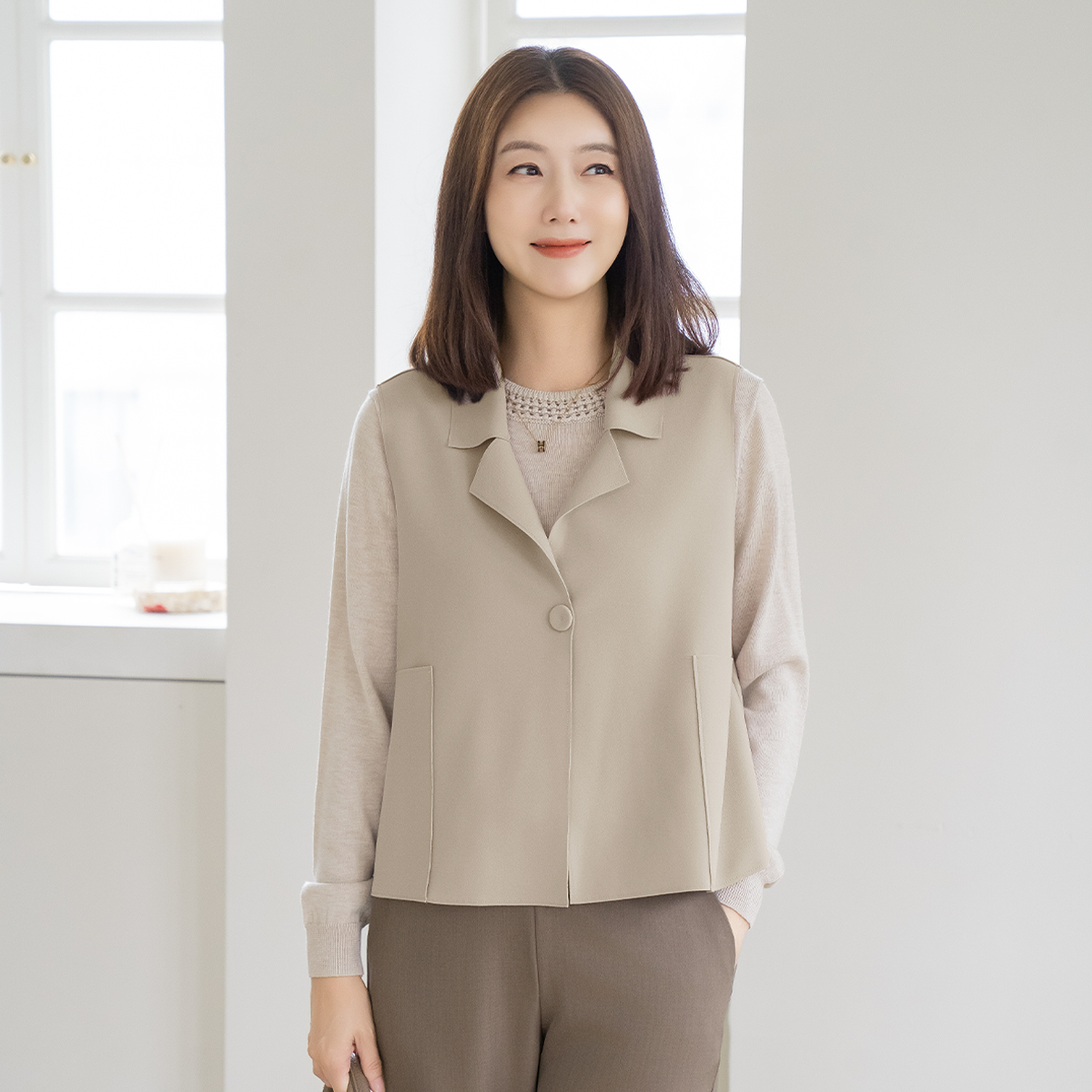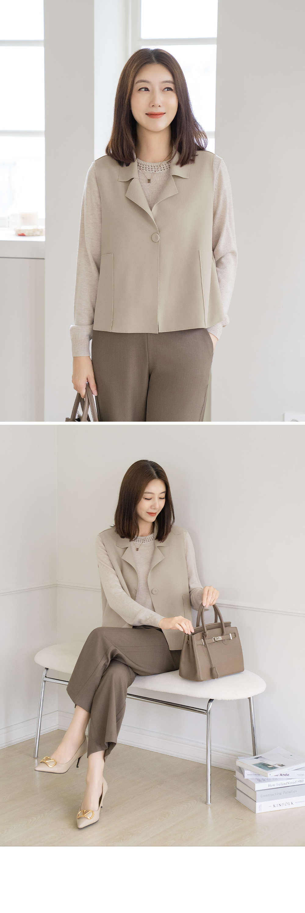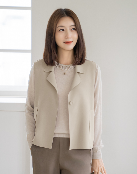 • [Classy Madam] Soft One-Button Vest - VE2509016 -