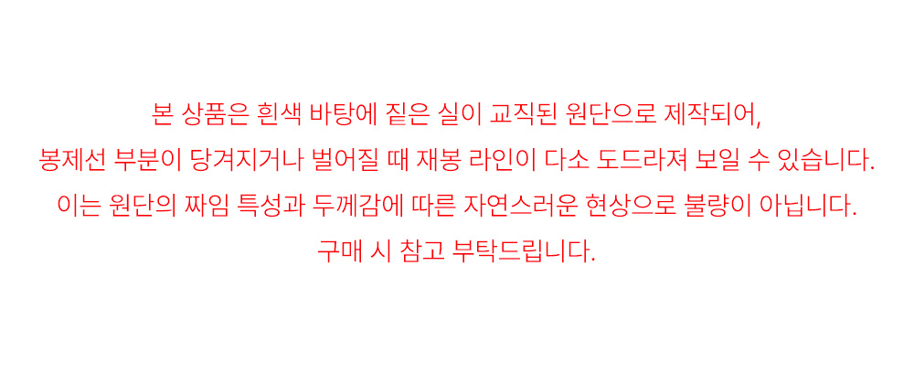 소재 특성상 늘어남이 있을 수 있으니 참고해 주시기 바랍니다.