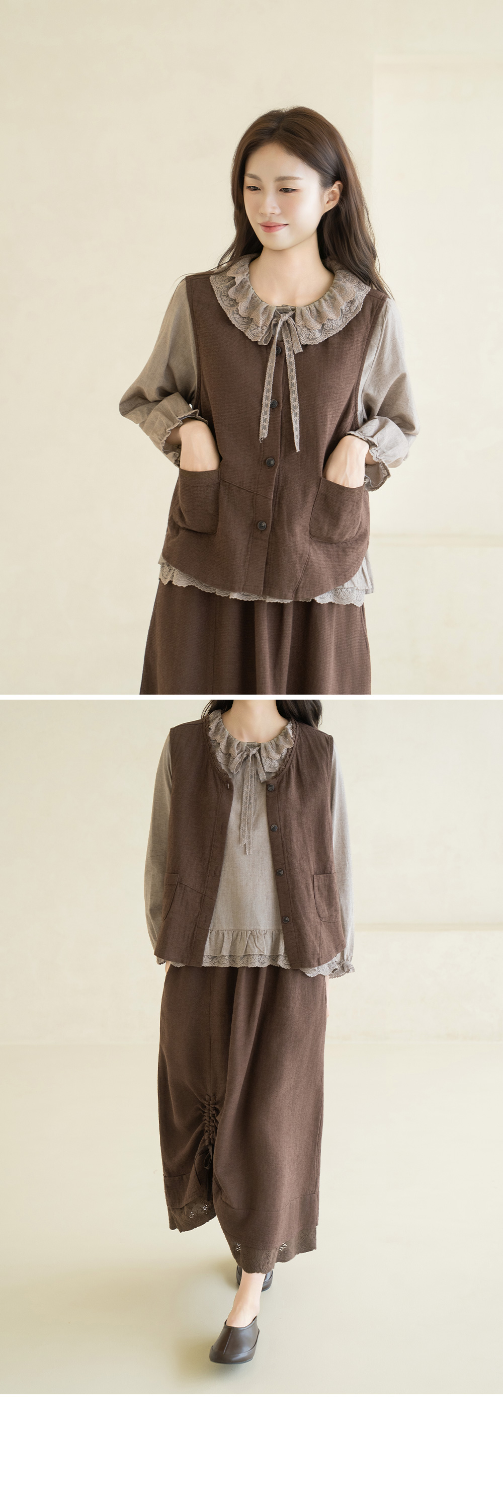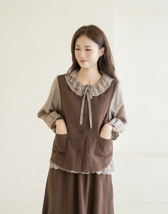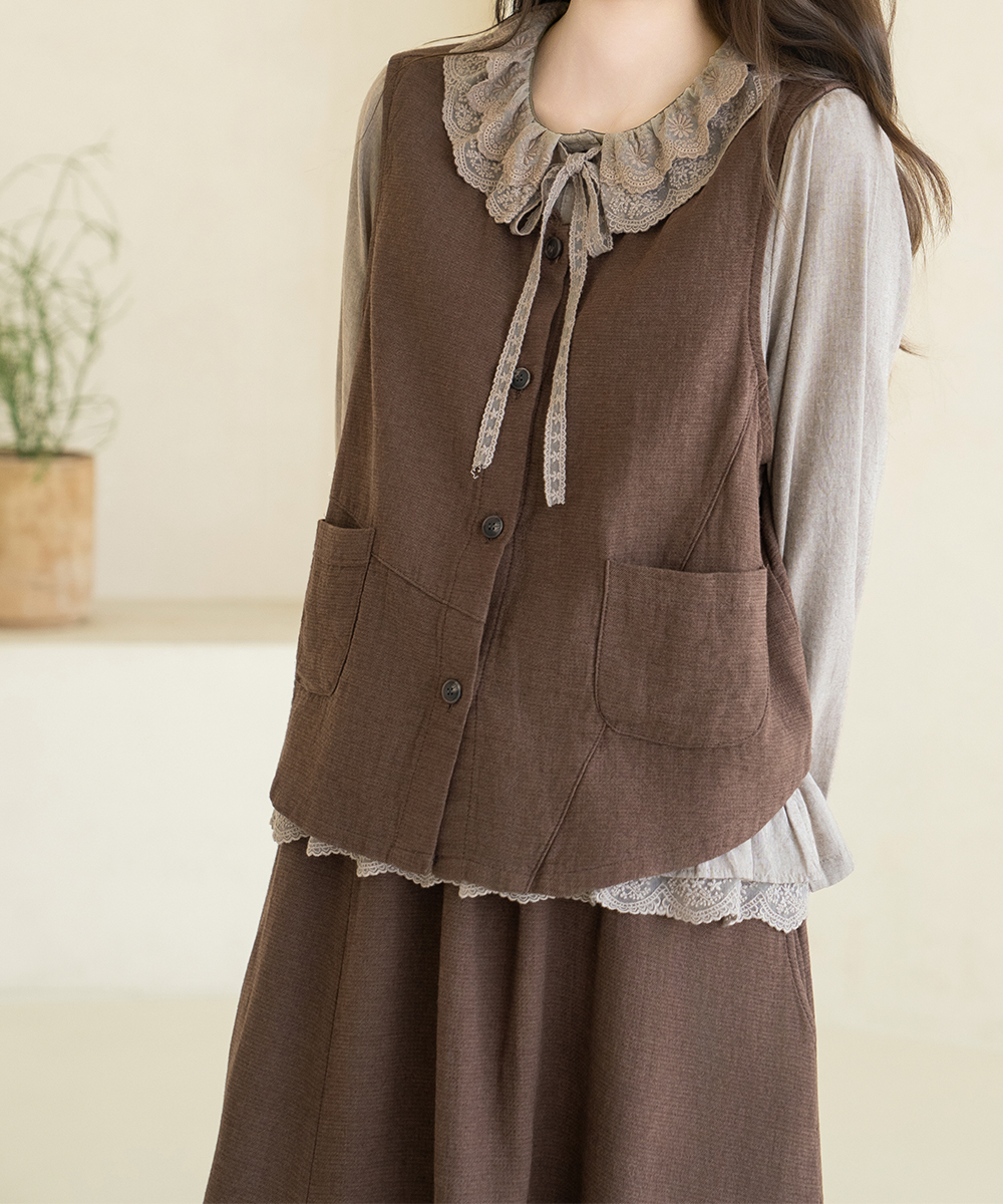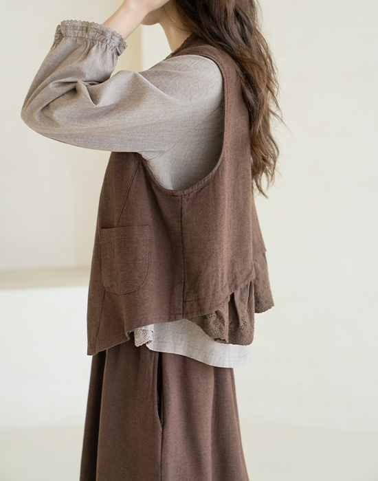 • [Natural Poem] Back Lace Color Block Vest - VE2510001 -