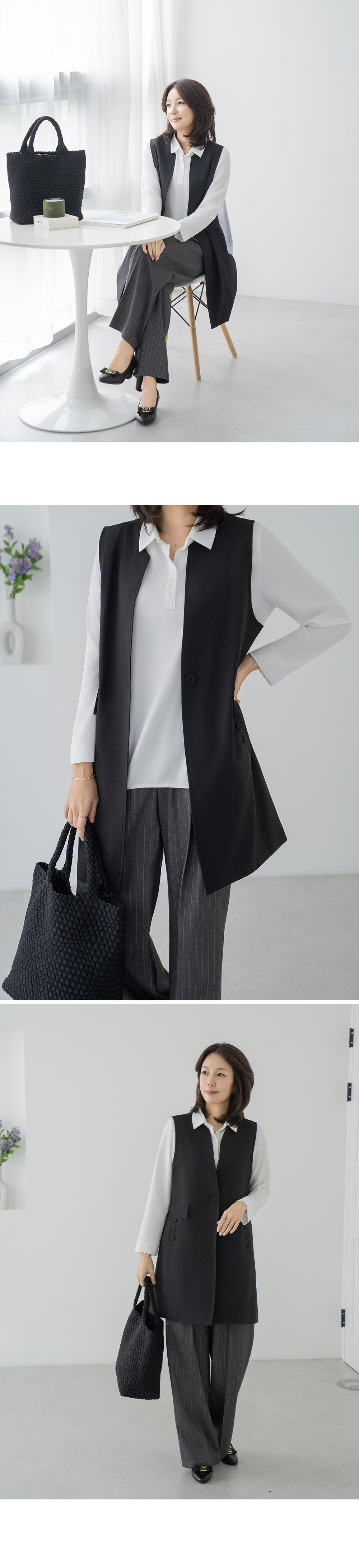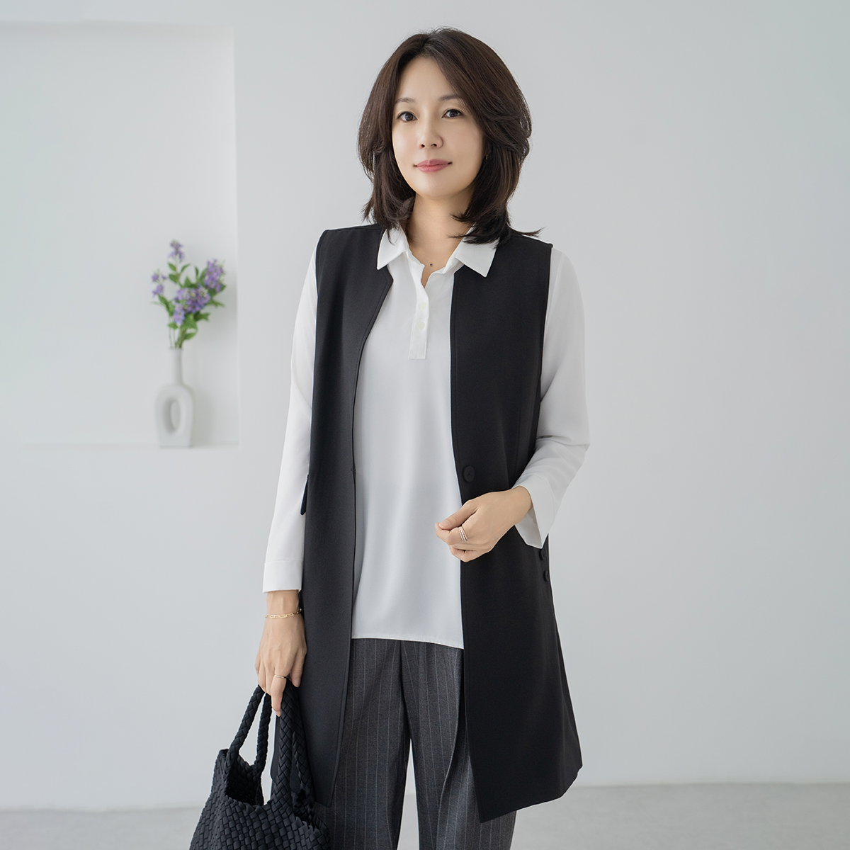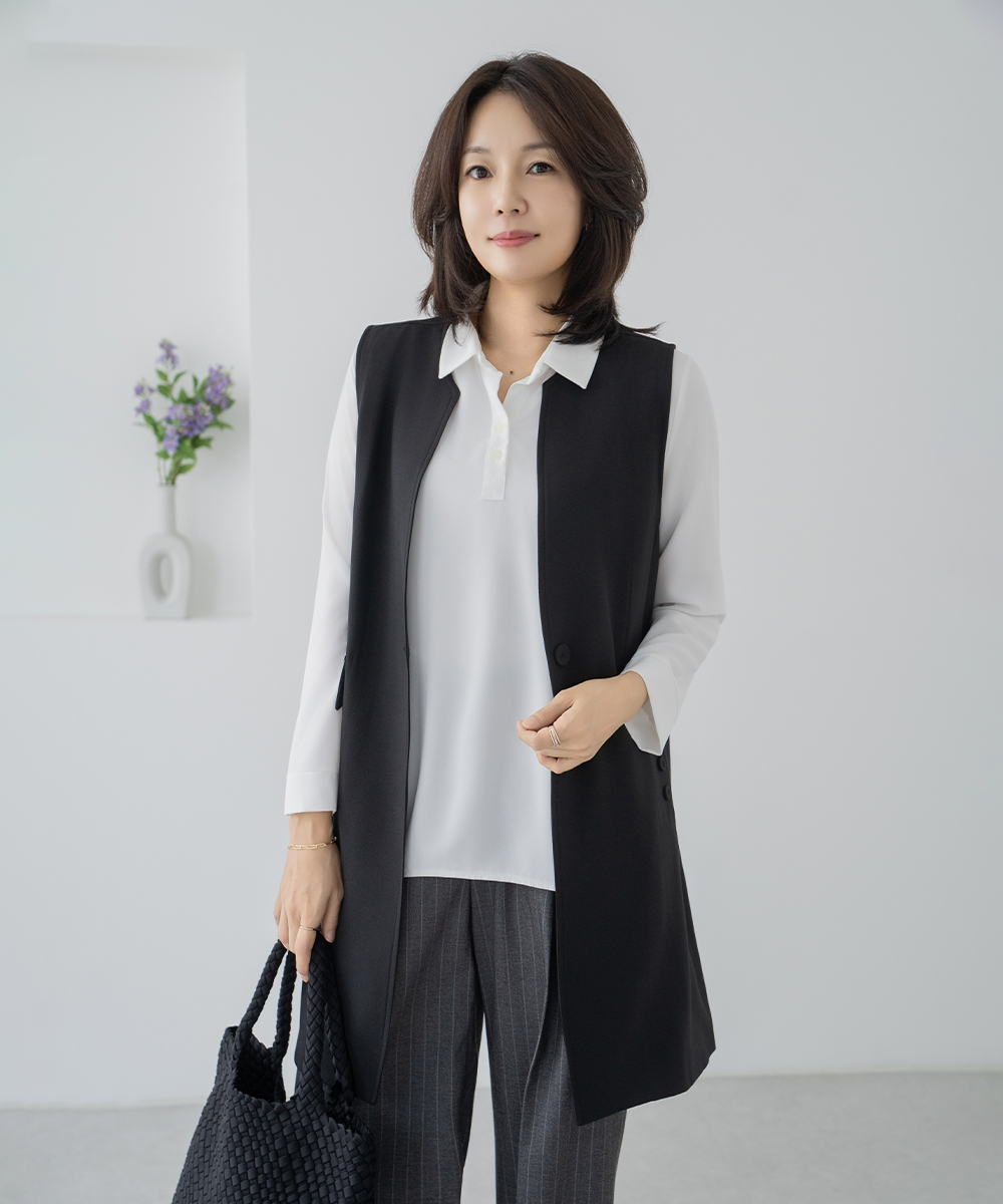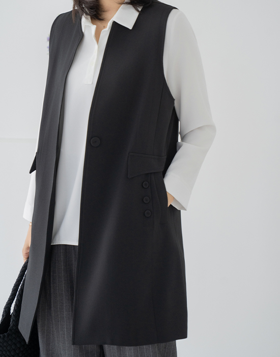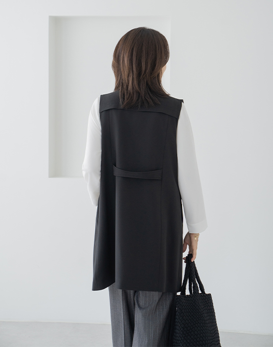 • [Classy Madam] Back Belt No Collar Long Vest - VE2509028 -