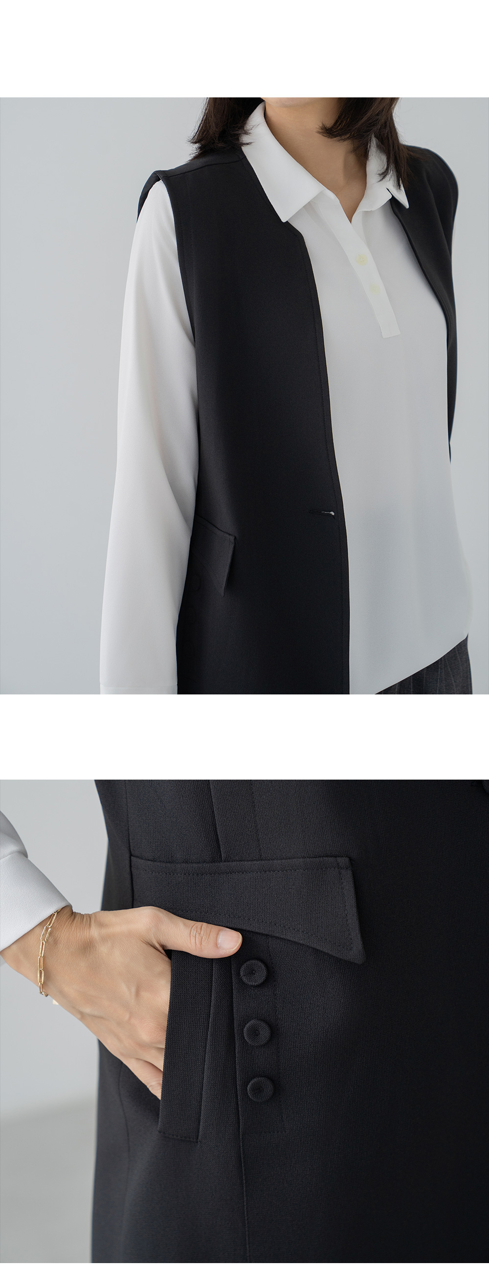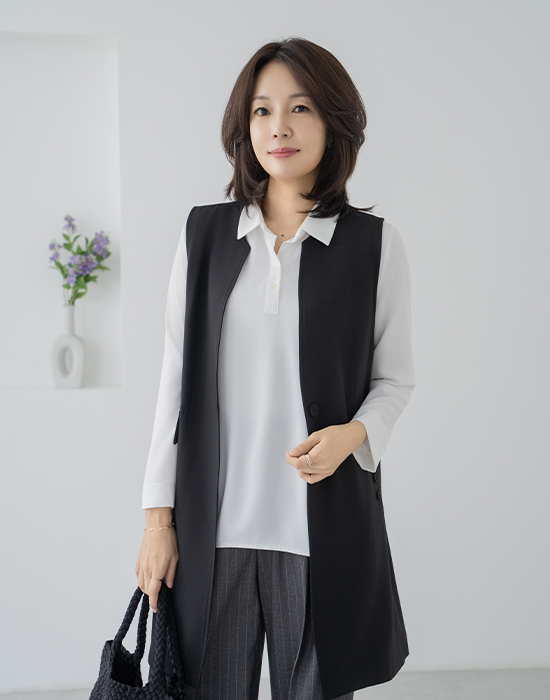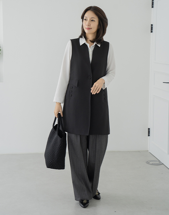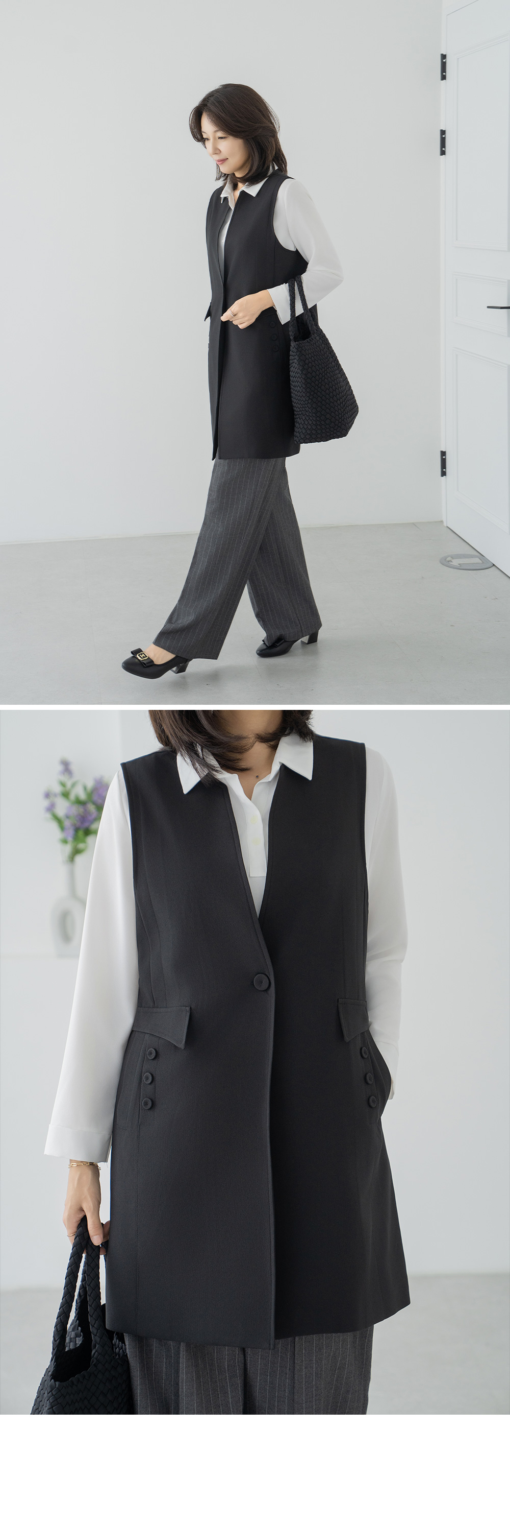 • [Classy Madam] Back Belt No Collar Long Vest - VE2509028 -