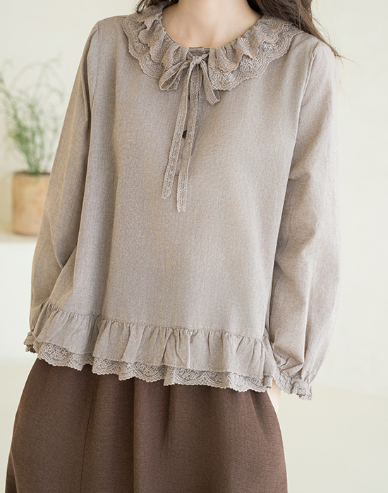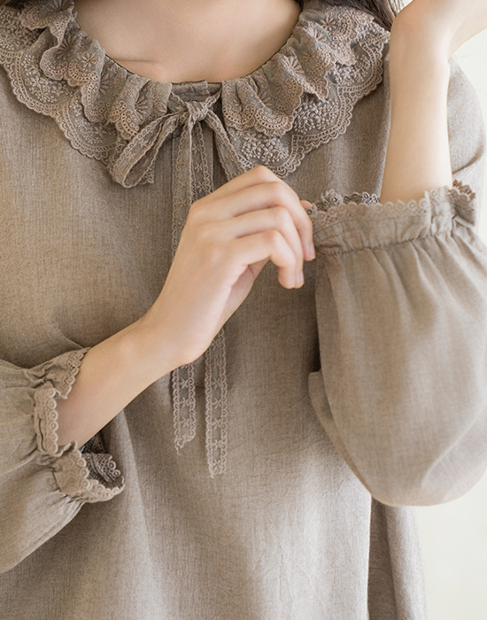 • [Natural Poem] Double Lace Collar Blouse - BL2510001 -