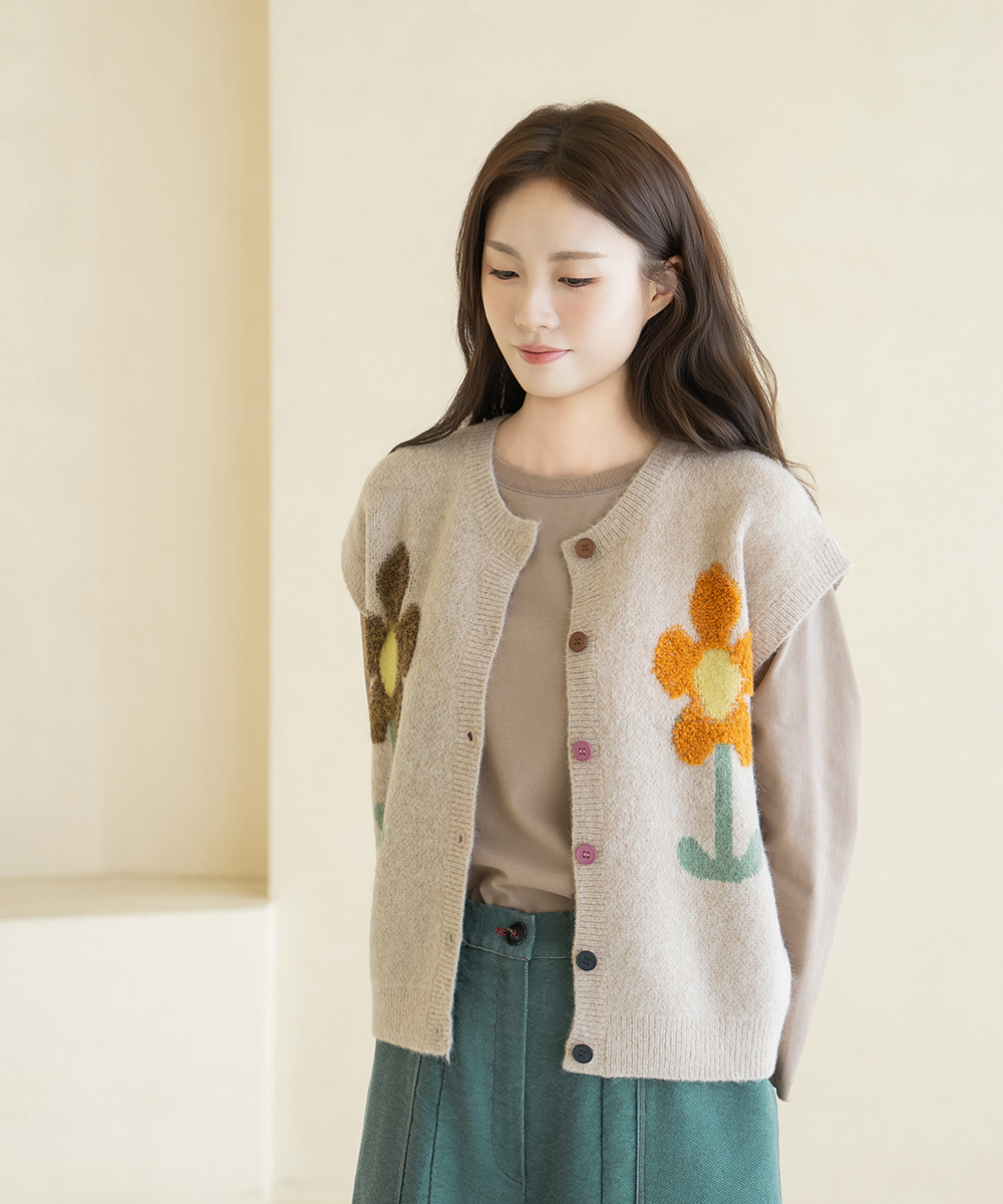 • [Natural Poem] Bright Flower Knit Vest - VE2510002 -