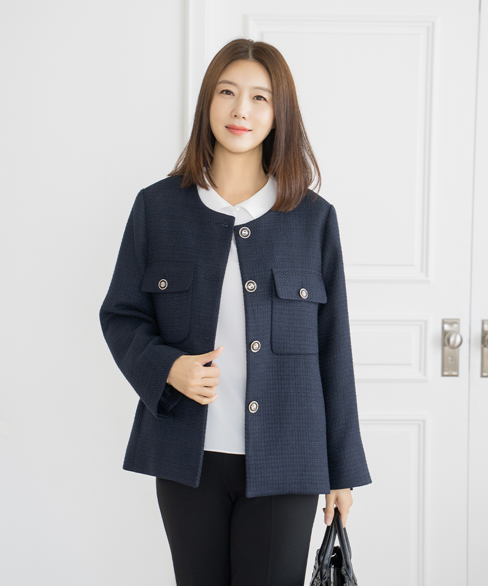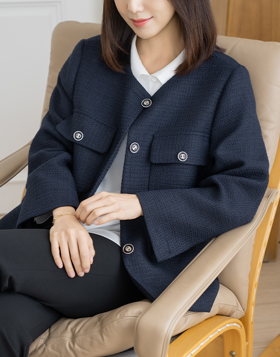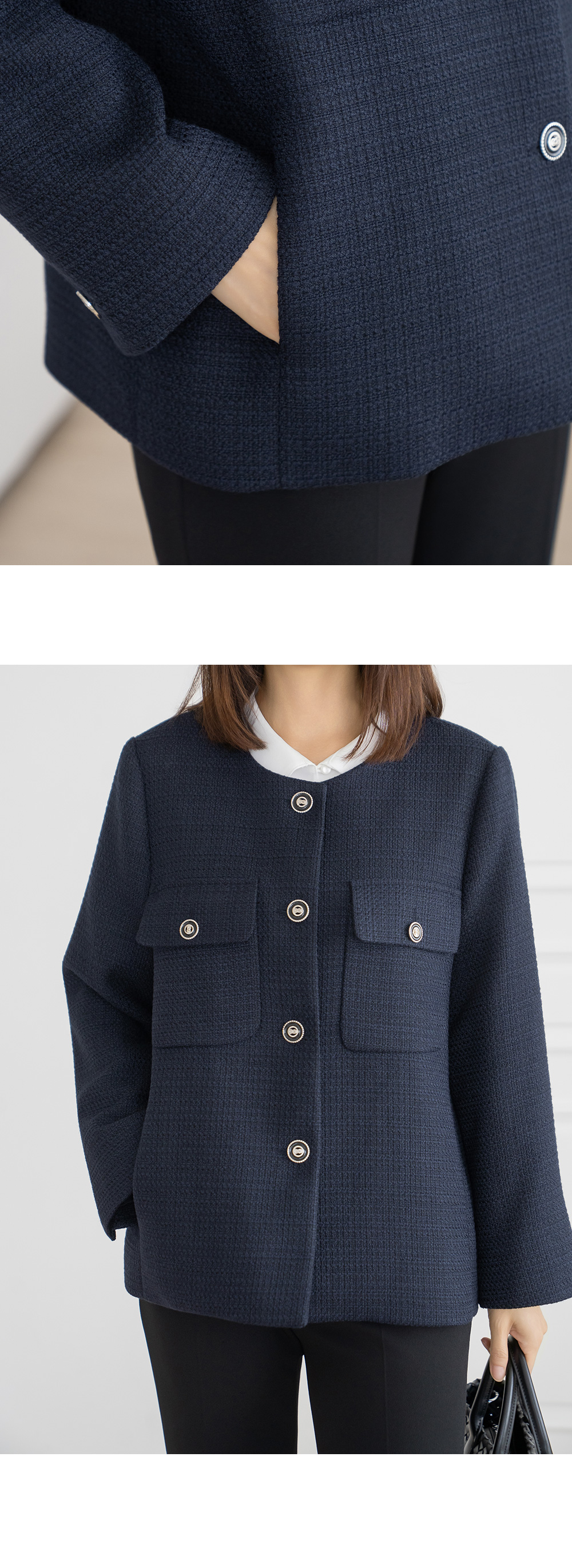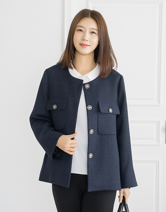 • [Classy Madam] Classic Button Tweed Jacket - JK2510004 -