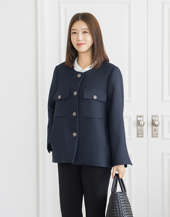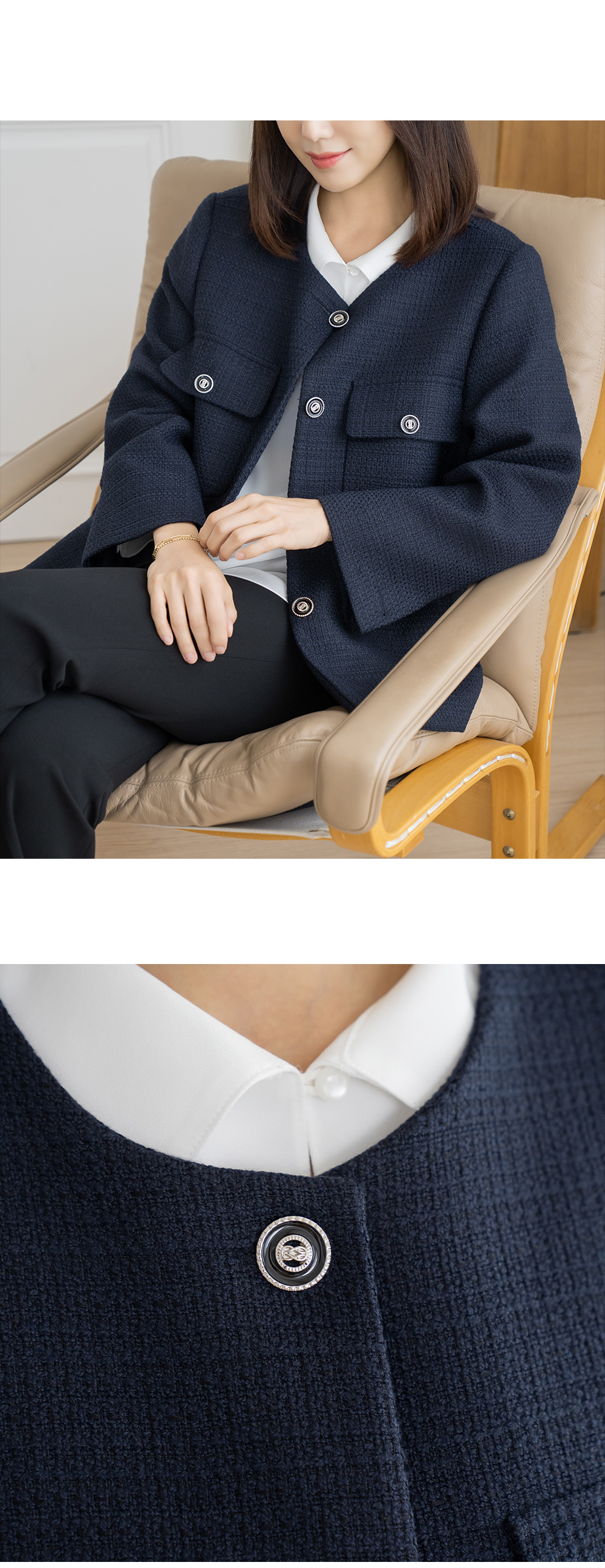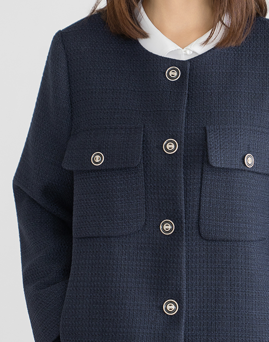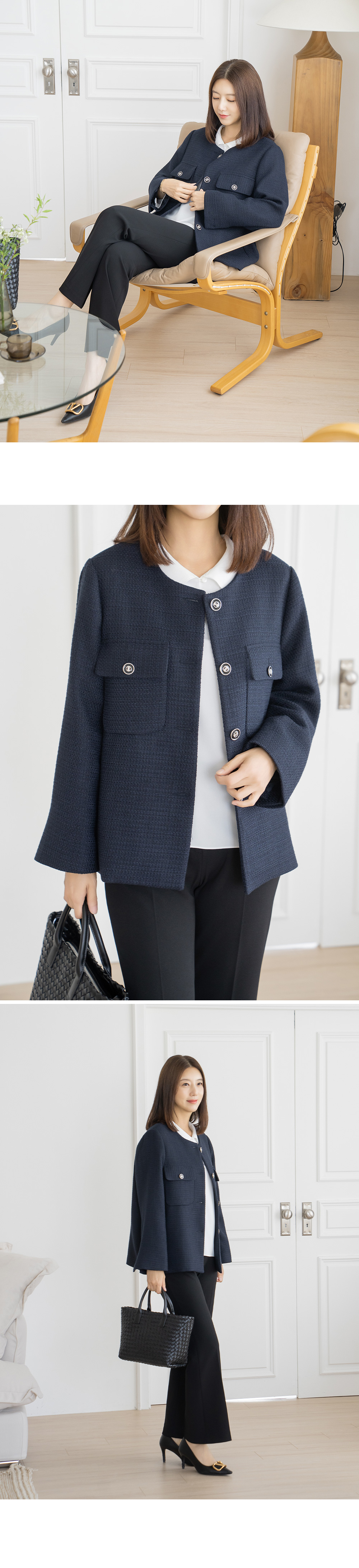 • [Classy Madam] Classic Button Tweed Jacket - JK2510004 -