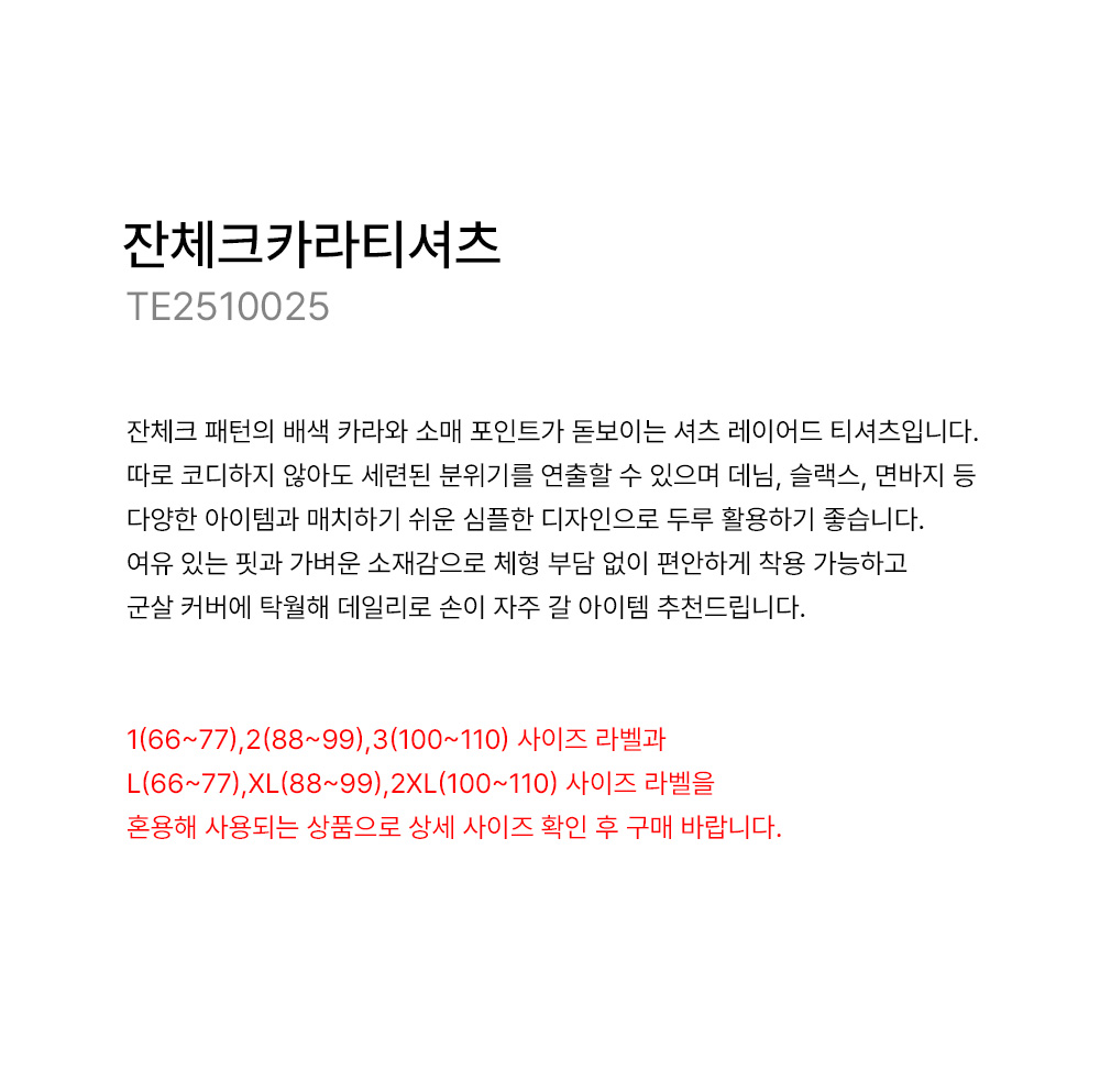 - 1(66~77),2(88~99),3(100~110) 사이즈 라벨과 L(66~77),XL(88~99),2XL(100~110) 사이즈 라벨을 혼용해 사용되는 상품으로 상세 사이즈 확인 후 구매 바랍니다.