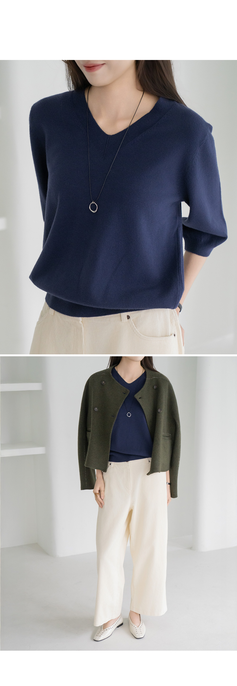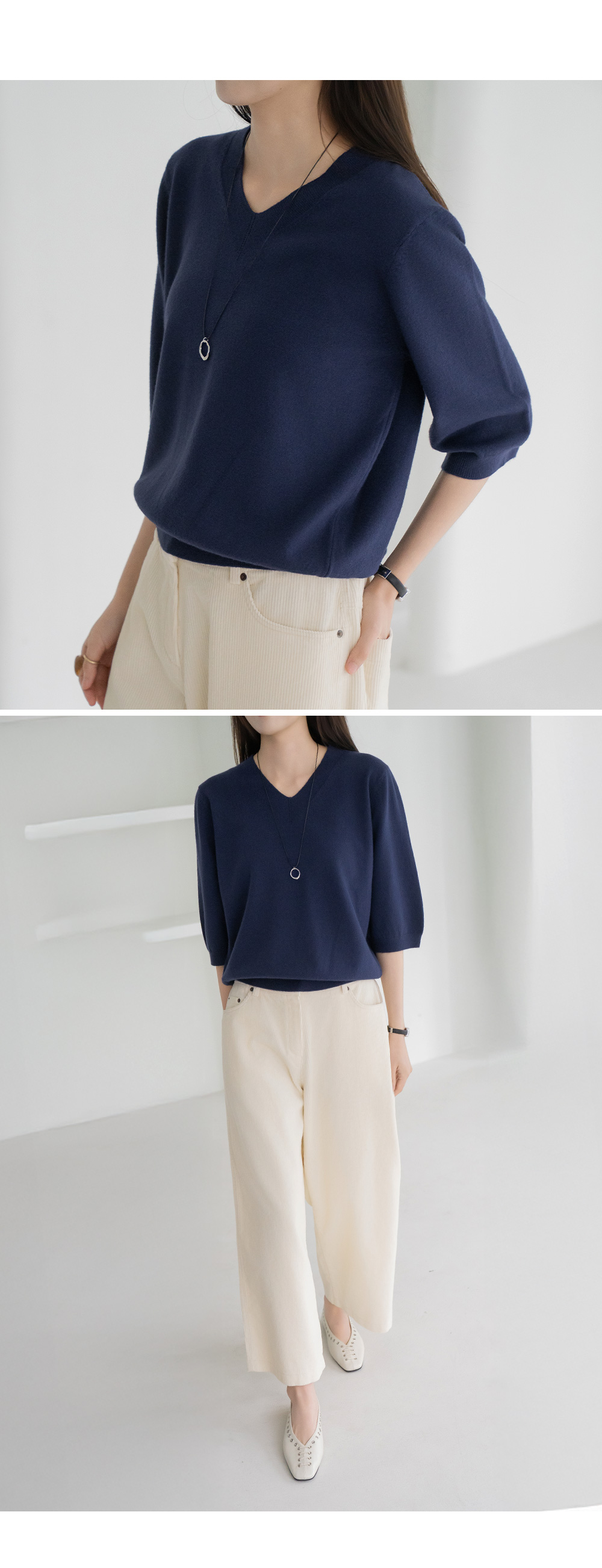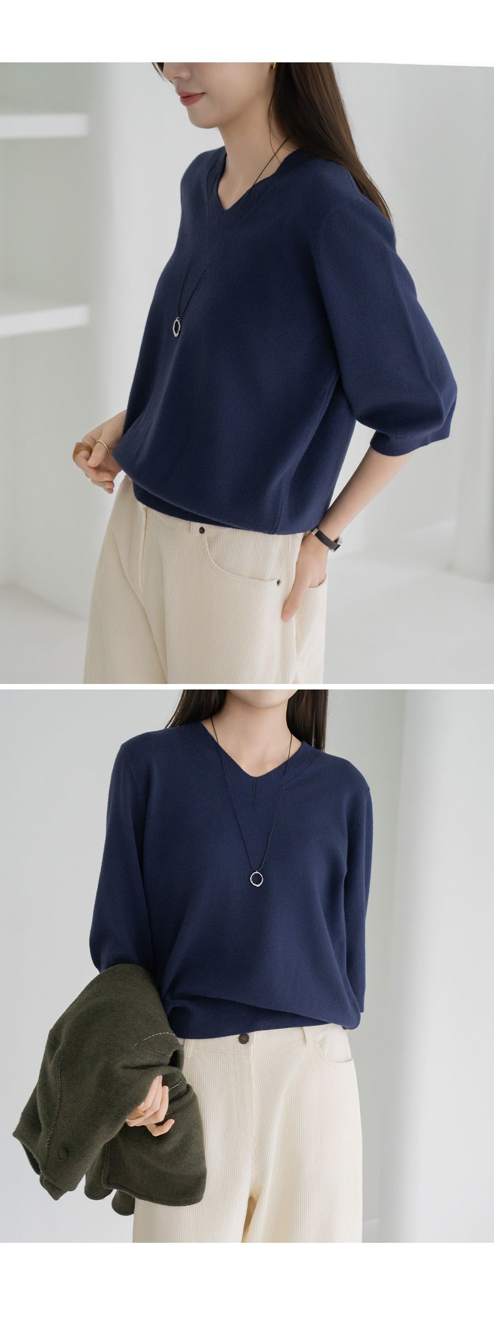 • [Modern Basic] 3/4 Sleeve V-Neck Knit-KN2510006-