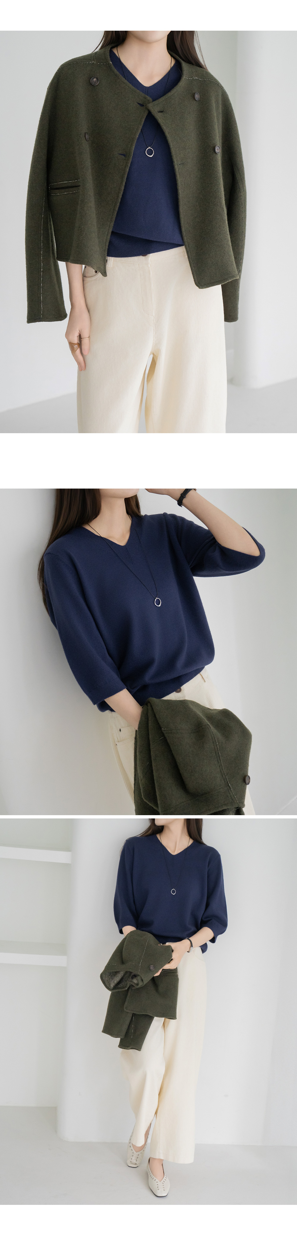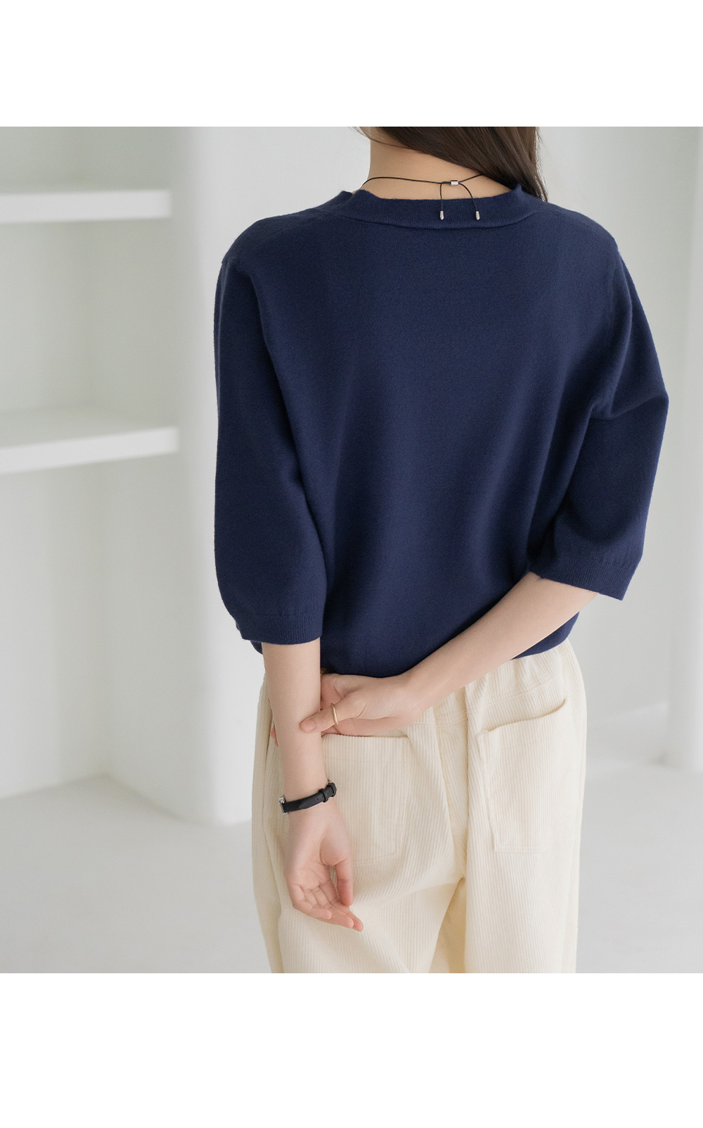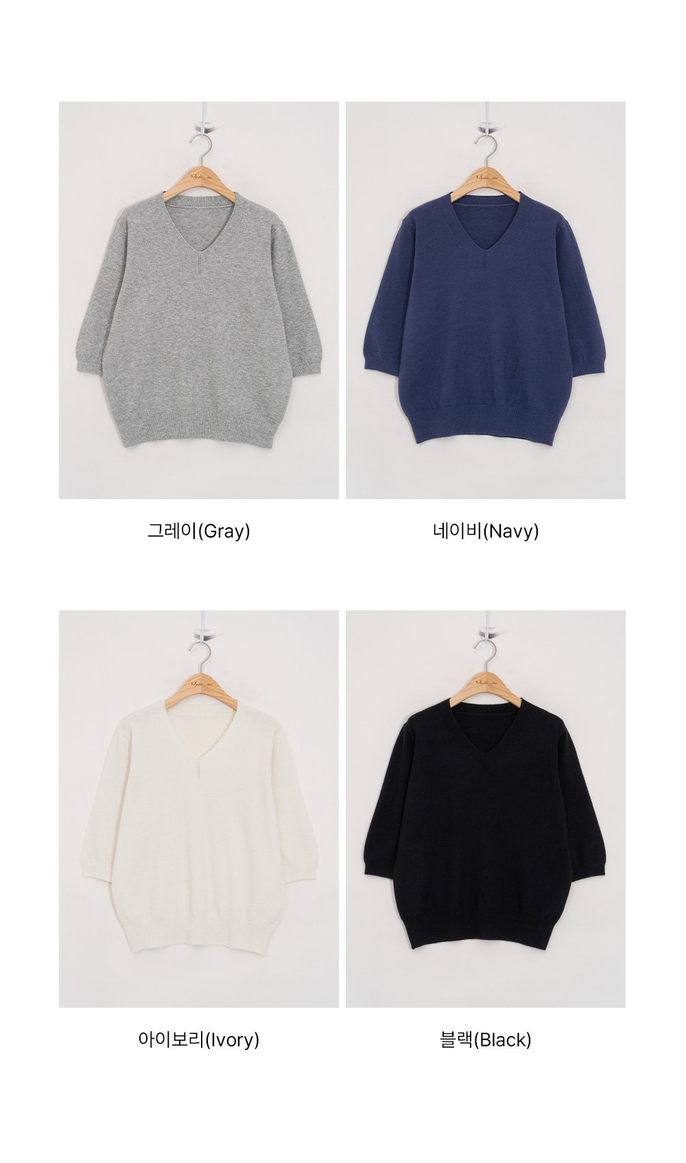 • [Modern Basic] 3/4 Sleeve V-Neck Knit-KN2510006-