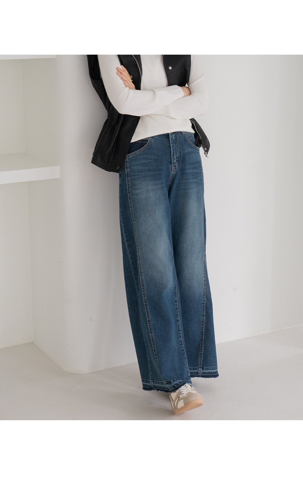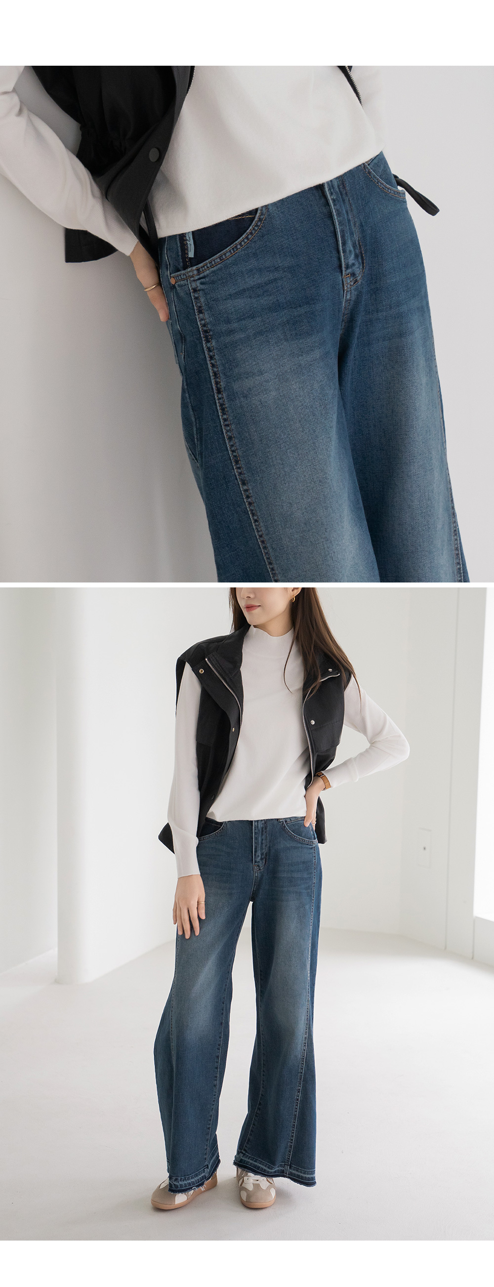 • [Modern Basic] Hem-slit wide denim pants - PN2510023 -