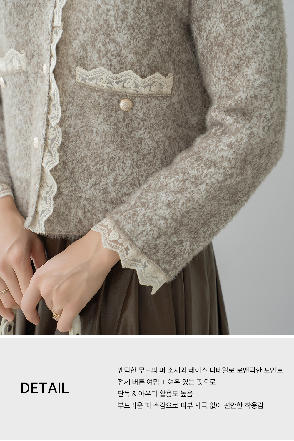• Fluffy Lace Fur Cardigan-CA2510012-