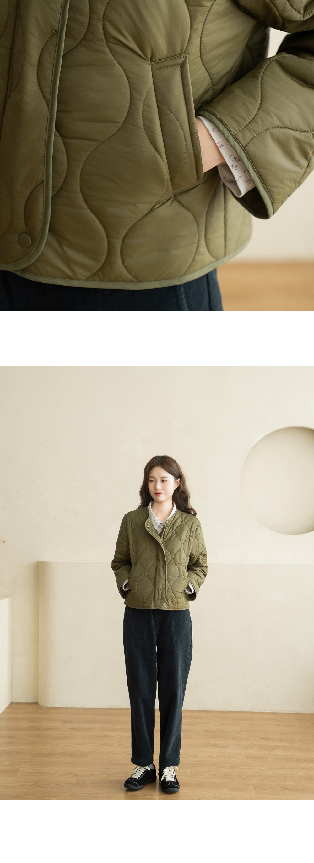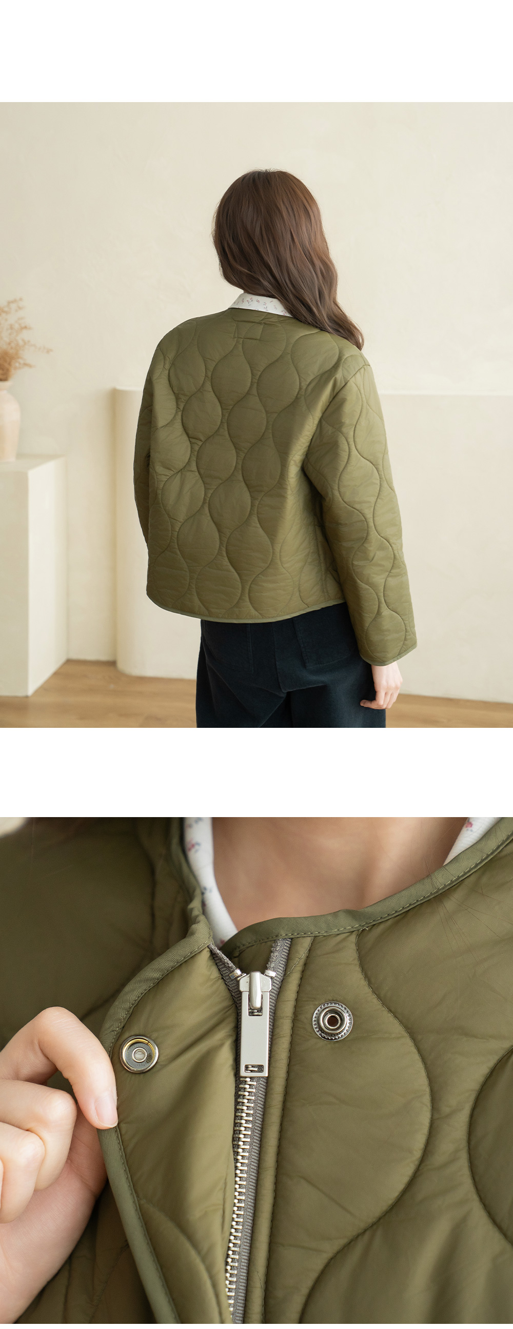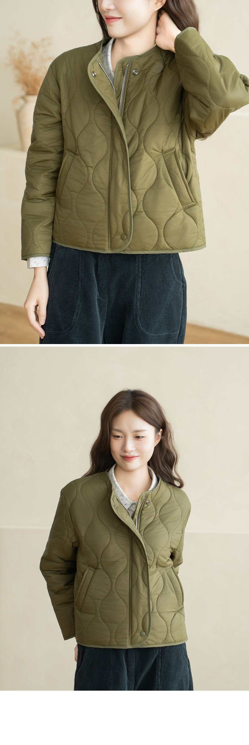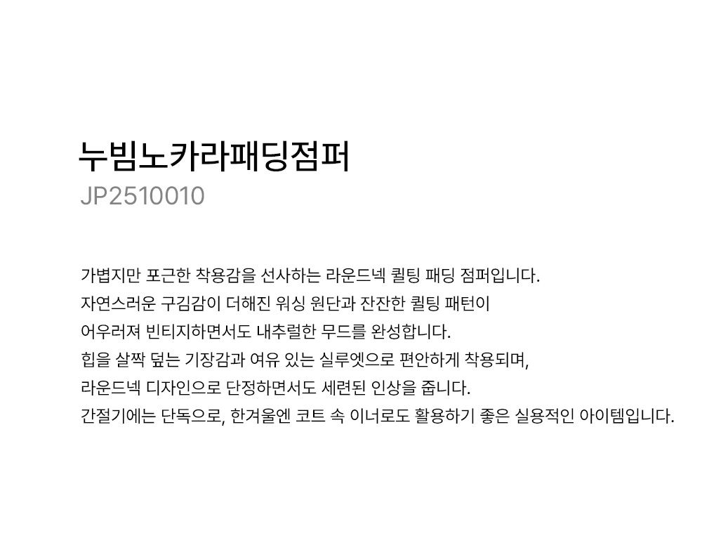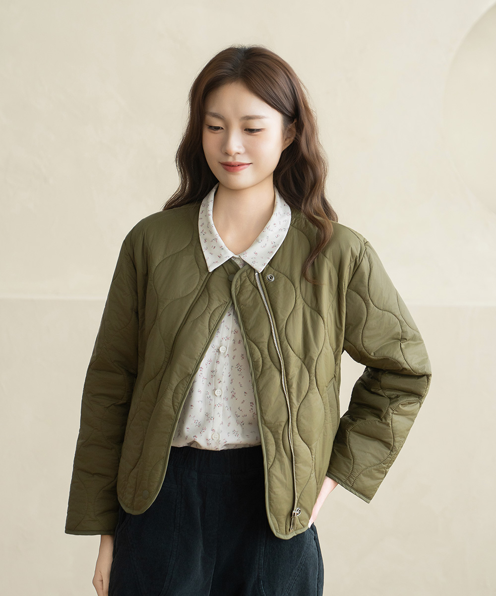 • [Natural Poem] Quilted No-collar Padded Jumper - JP2510010 -